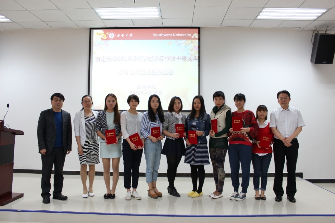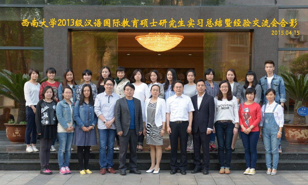 4月15日下午,2013级汉语国际教育硕士实习总结暨经验交流会在紫云楼317教室隆重举行。研究生院专业学位管理办公室主任黄漓红、365上市公司(英国)集团院长张发钧、党总支书记兼副院长刘猛、副院长张家政、教师代表以及2013级和2014级汉语国际教育硕士全体同学出席本次会议。