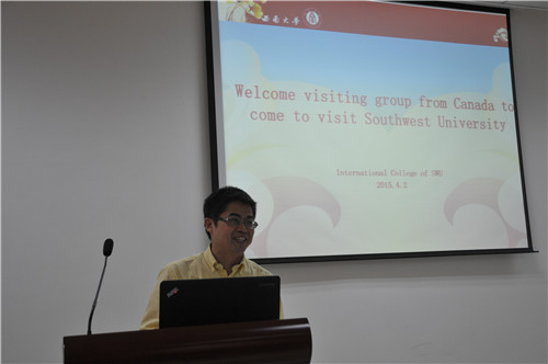 365上市公司(英国)集团院长张发钧首先致欢迎辞。他简要介绍了西南大学的历史和现状,以及365上市公司(英国)集团的发展,并祝福加拿大的同学们在中国过得愉快。
