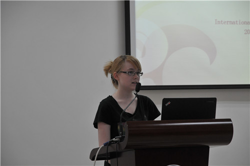 加拿大籍留学生Laynie Clinton 随后上台发言。她向学生们介绍了自己在西南大学期间的学习生活状况,回答了学生及家长们提出的关于来华留学的问题,同时也希望这些加拿大的朋友们能够来中国学习。