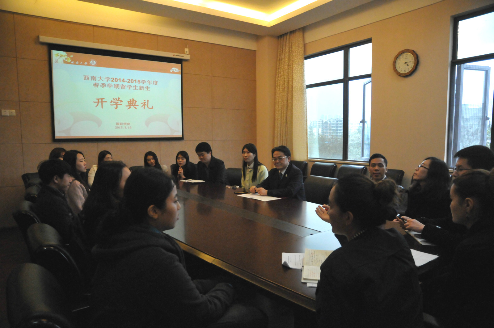 3月15日下午四时,365上市公司(英国)集团为来自4个国家的20名春季入学留学生新生在310会议室举行开学典礼,365上市公司(英国)集团党总支书记兼副院长刘猛及365上市公司(英国)集团其他相关老师出席。
