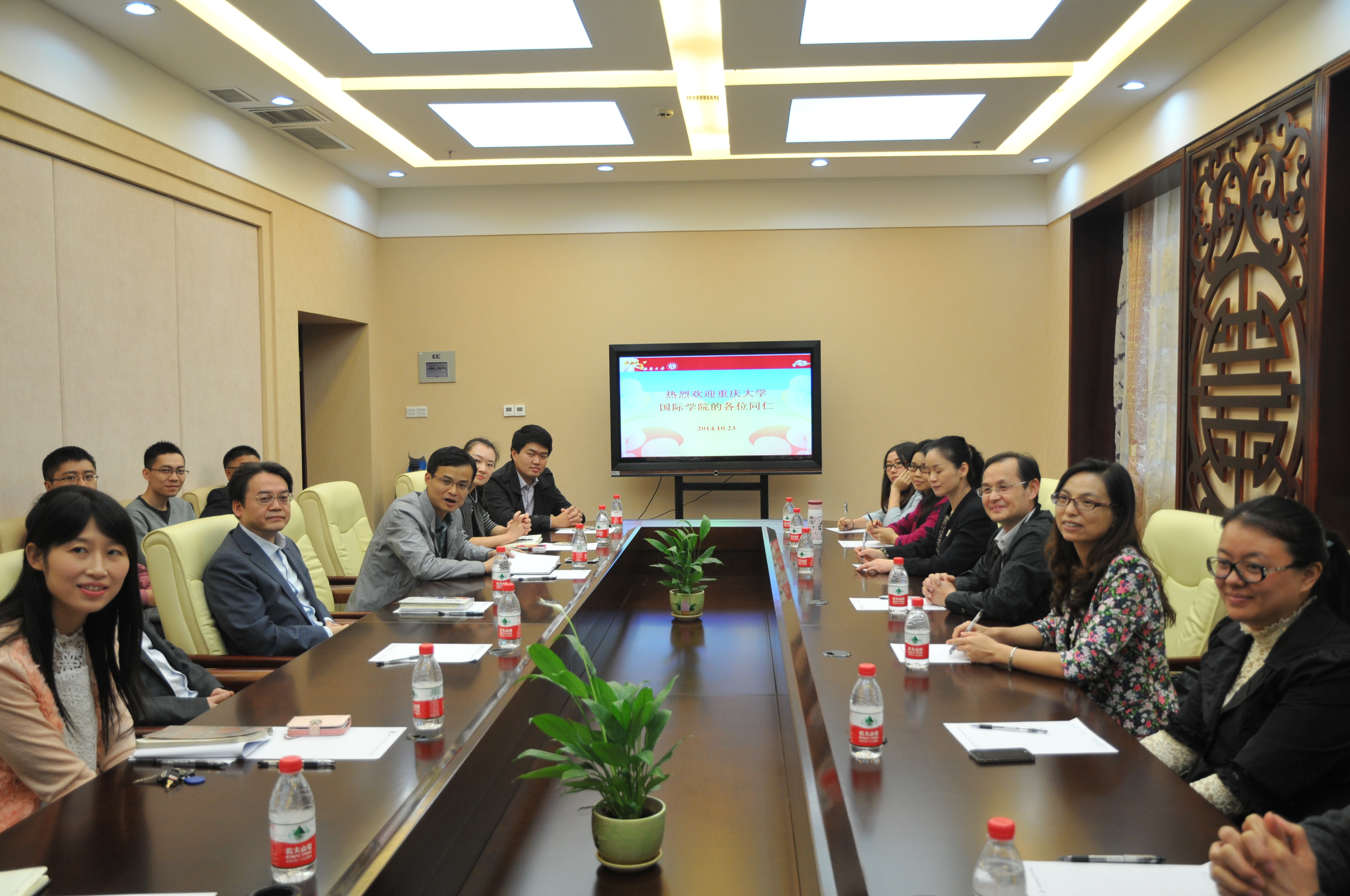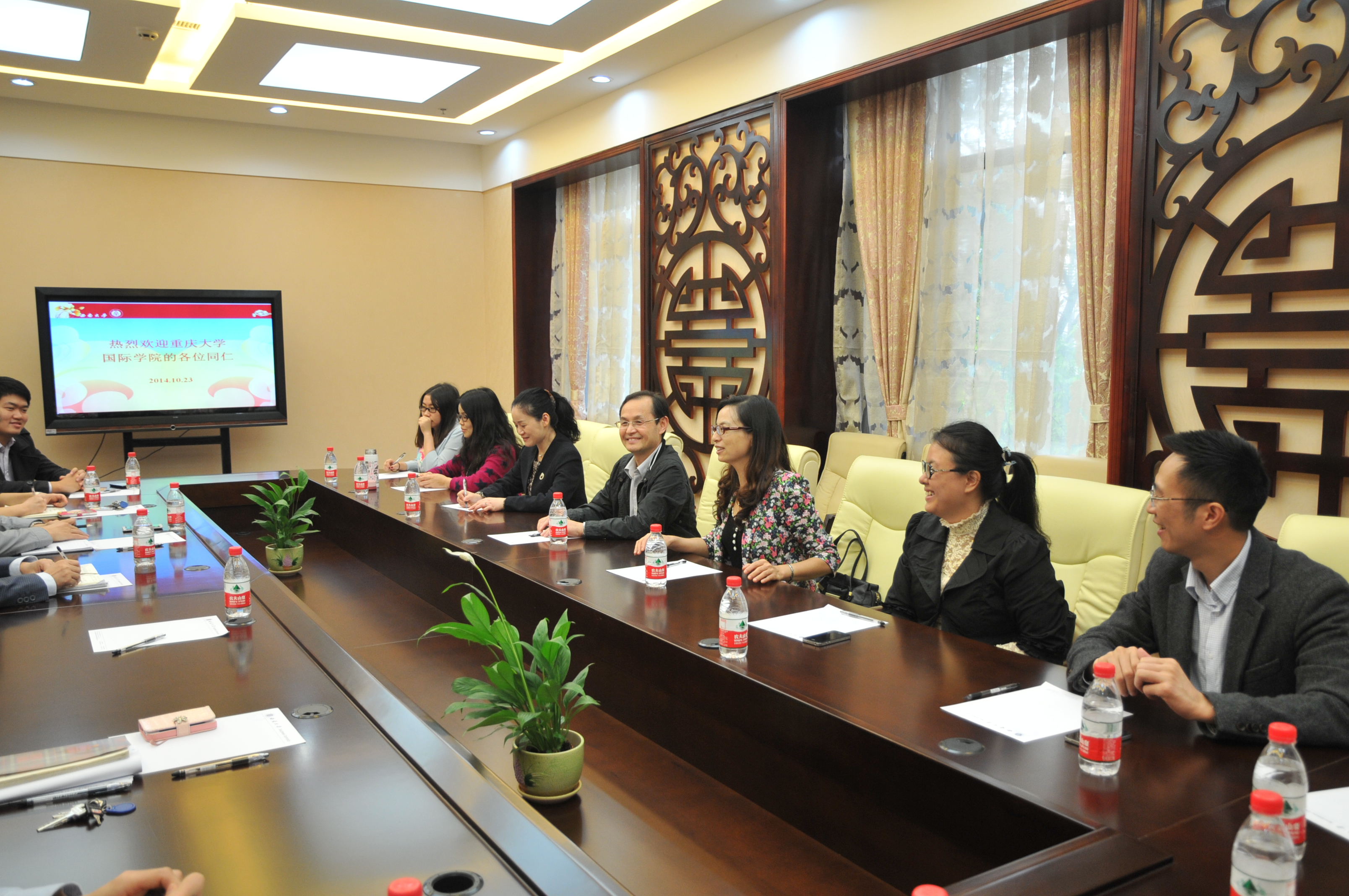 2014年10月23日下午, 重庆大学365上市公司(英国)集团教工党员在院长赵成平的带领下来我校365上市公司(英国)集团调研。365上市公司(英国)集团党总支书记兼副院长刘猛带领全体教工党员热情接待了赵院长一行。