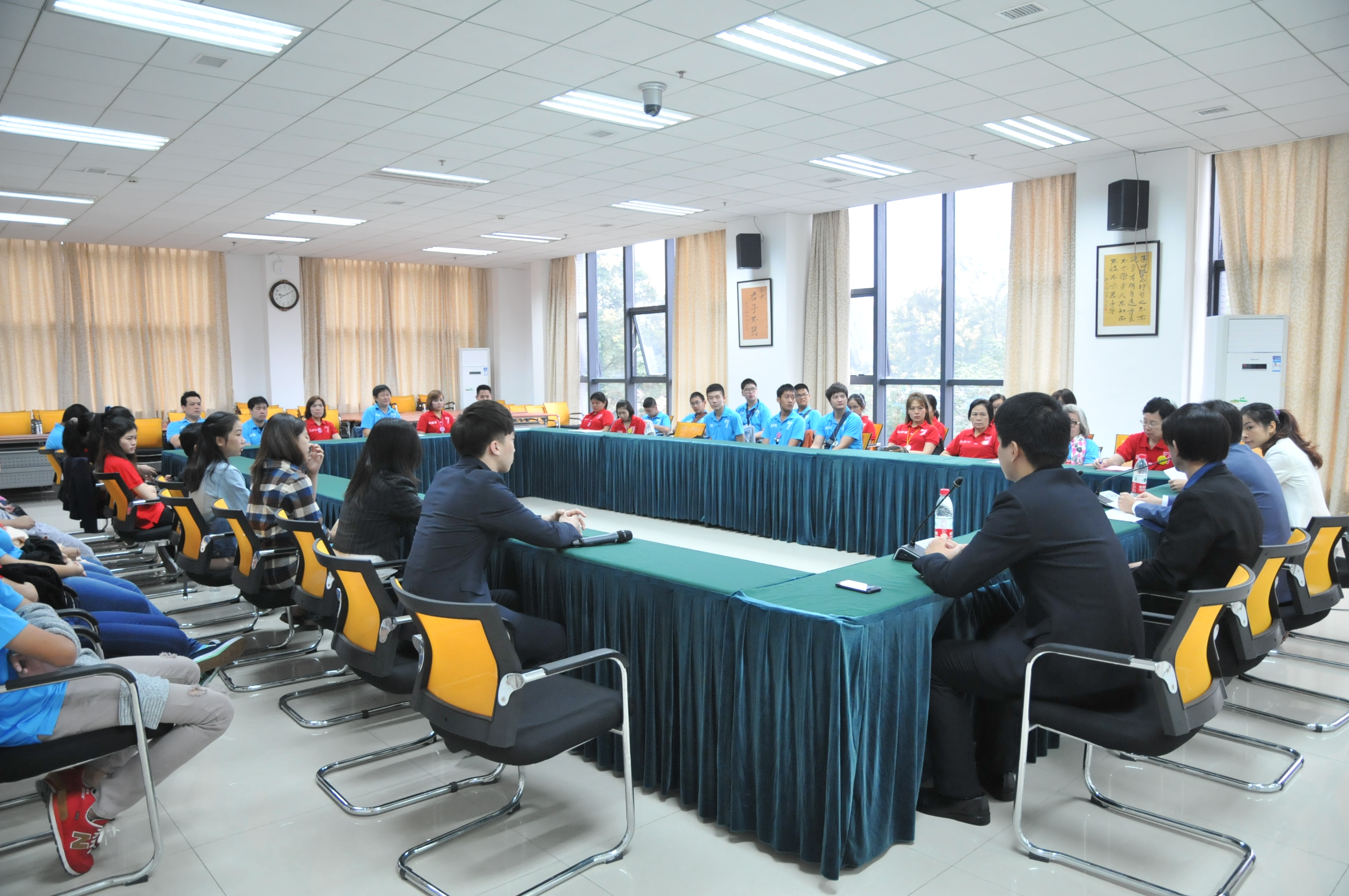 10月15日上午,2014年泰国华裔学生赴华汉语秋令营开营典礼在紫云楼317会议室举行,365上市公司(英国)集团总支书记兼副院长刘猛,教师代表和40名泰国学员参加典礼。