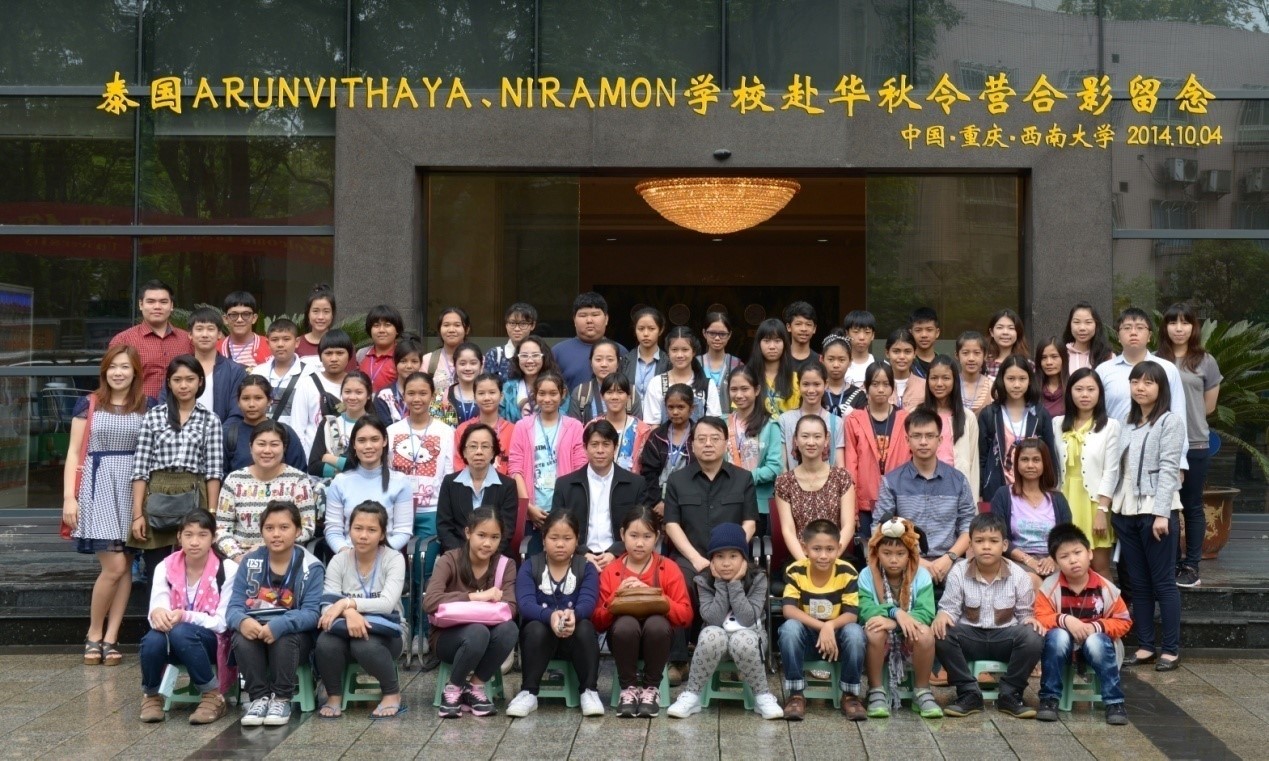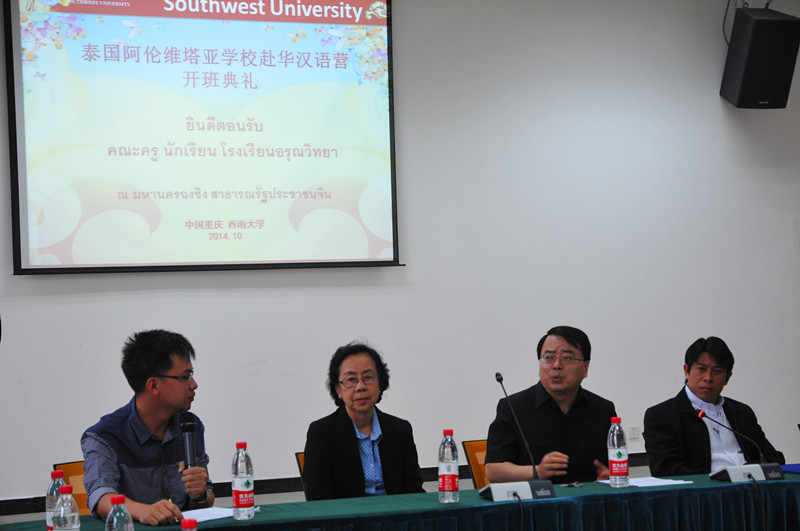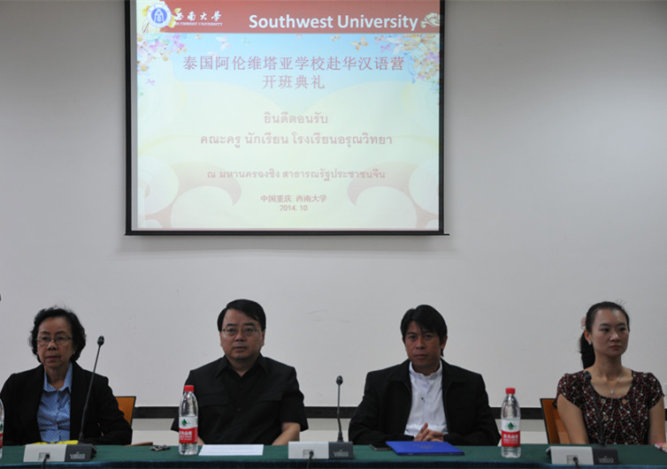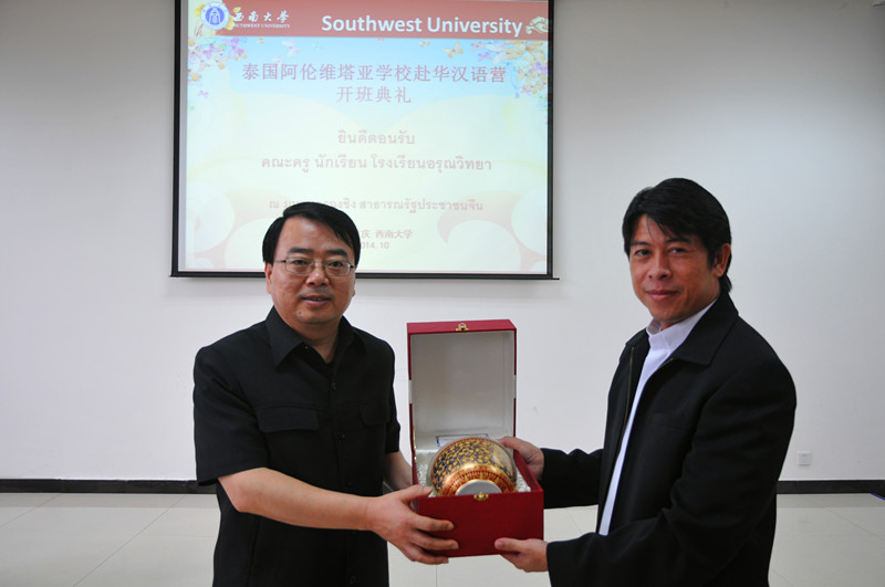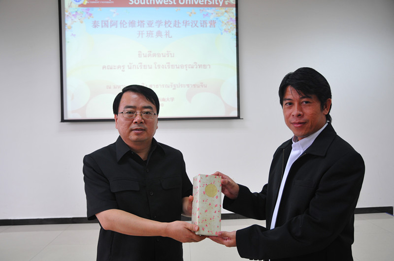 PAITOON YANNGAM校长致感谢辞,他表示ARUNVITHAYA和NIRAMON两所学校一向都很重视汉语教学,此次学生们来到历史悠久、环境优美的西南大学,一定会学有所得、满载而归,并表达了对西南大学和365上市公司(英国)集团的美好祝愿。
