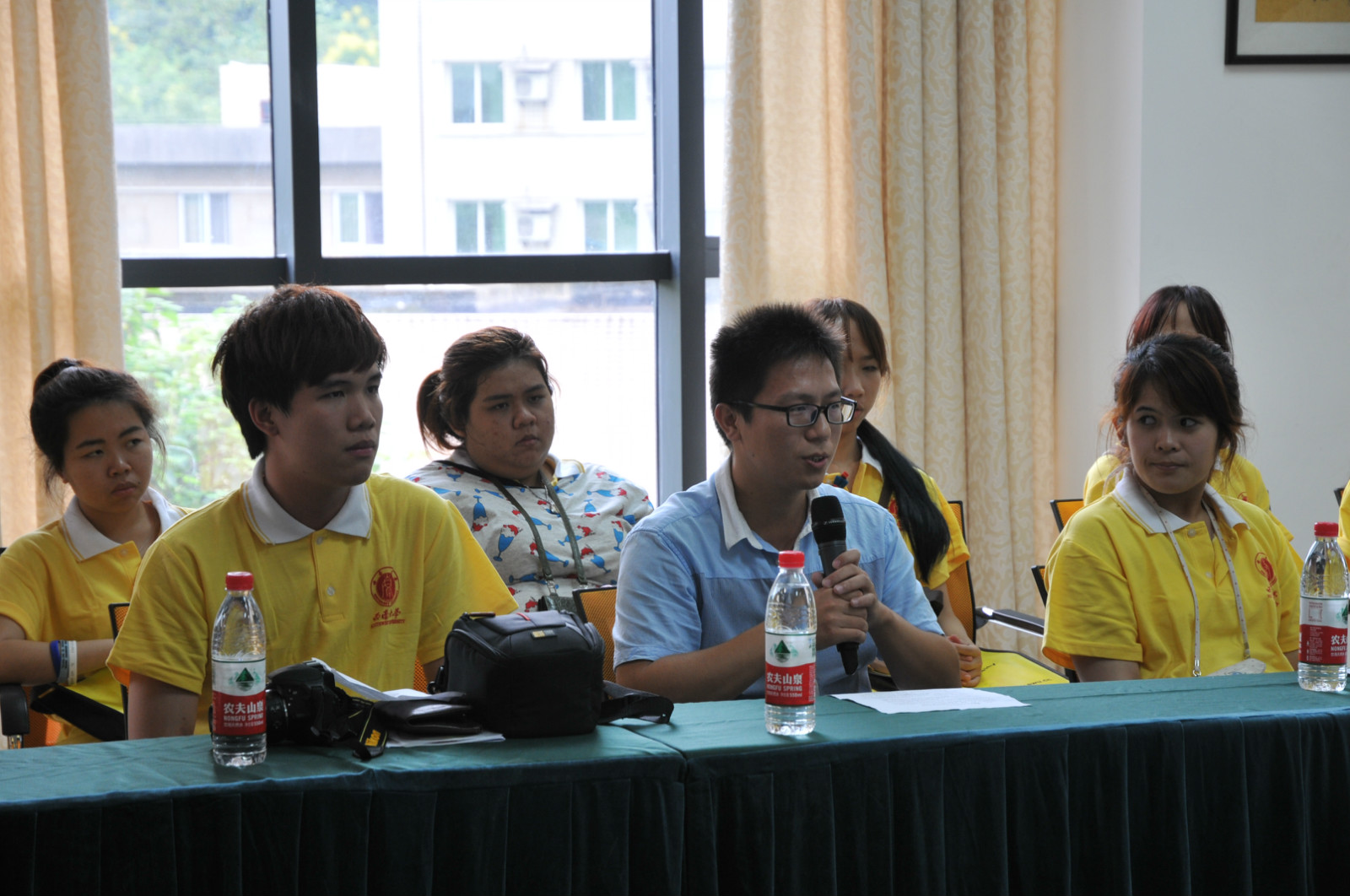 开班仪式上,张院长首先向来自泰国的老师和同学们表达了热烈的欢迎,用简单、亲切的语言向留学生们介绍了我校的学习、生活环境,并鼓励留学生积极融入中国新生活。泰国正大管理学院林汉发老师充分肯定该项目所取得的优异成绩,衷心感谢我校对此项目所做的精心安排。任课教师代表黎力老师不仅传达了教师对同学的关心,同时也对留学生们提出了学习上的要求。泰国同学陈守成作为学生代表发言,表达了来西南大学学习的激动心情,并表示一定会珍惜这难得的求学机会,努力学习,早日学有所成。2014级中国汉语国际教育硕士李诗同学作为语伴代表发言,表示所有语伴都会竭尽全力,做泰国同学学习上的得力帮手、生活上的知心朋友。相信留学生们在众多老师的关心下、语伴的帮助下,定能很快的适应在西南大学的生活,度过美好而有意义的一年!