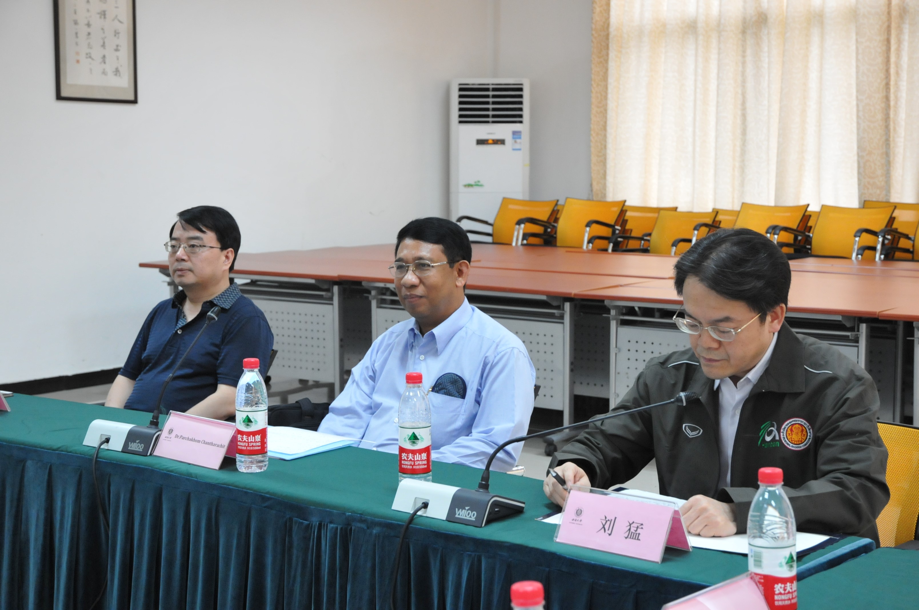 泰方代表团团长 Parchakhom Chantharachit博士致感谢词。他热情地回顾了四天的行程,认真总结了考察交流的收获。对我院领导和教师给予高度评价,同时希望双方在未来能有更多的合作。
