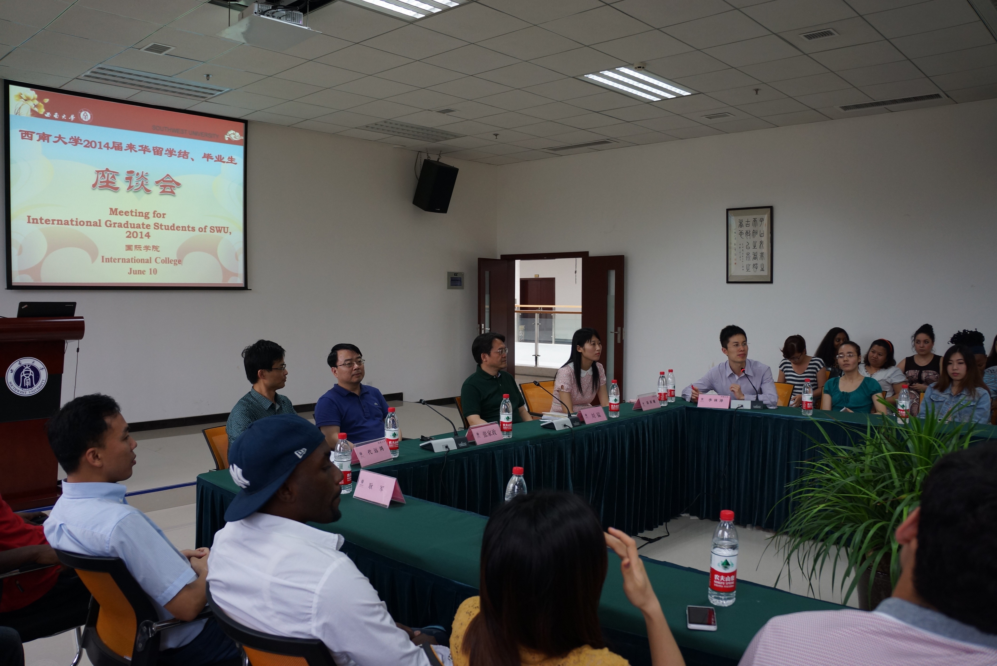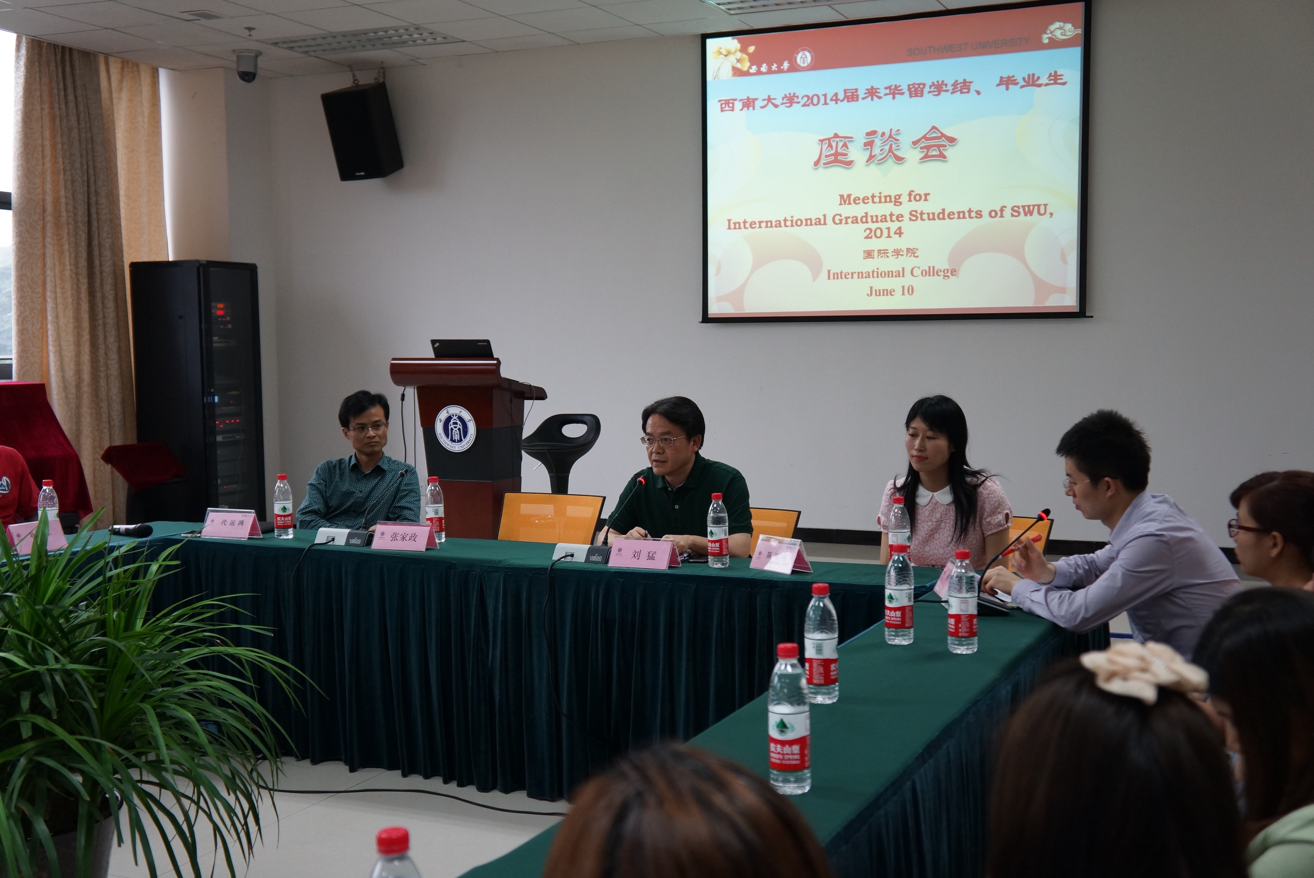 座谈会上,来自世界各国的留学生纷纷发言,饱含深情地回顾了远离祖国异乡求学的不易、在西南大学的生活和学习的快乐和收获,表达了对老师同学的感恩、对母校的不舍,情至深处,涕泗流涟。张家政副院长在发言中希望毕业生们一如既往地关注西大的发展,放飞梦想,更希望同学们早日圆梦。