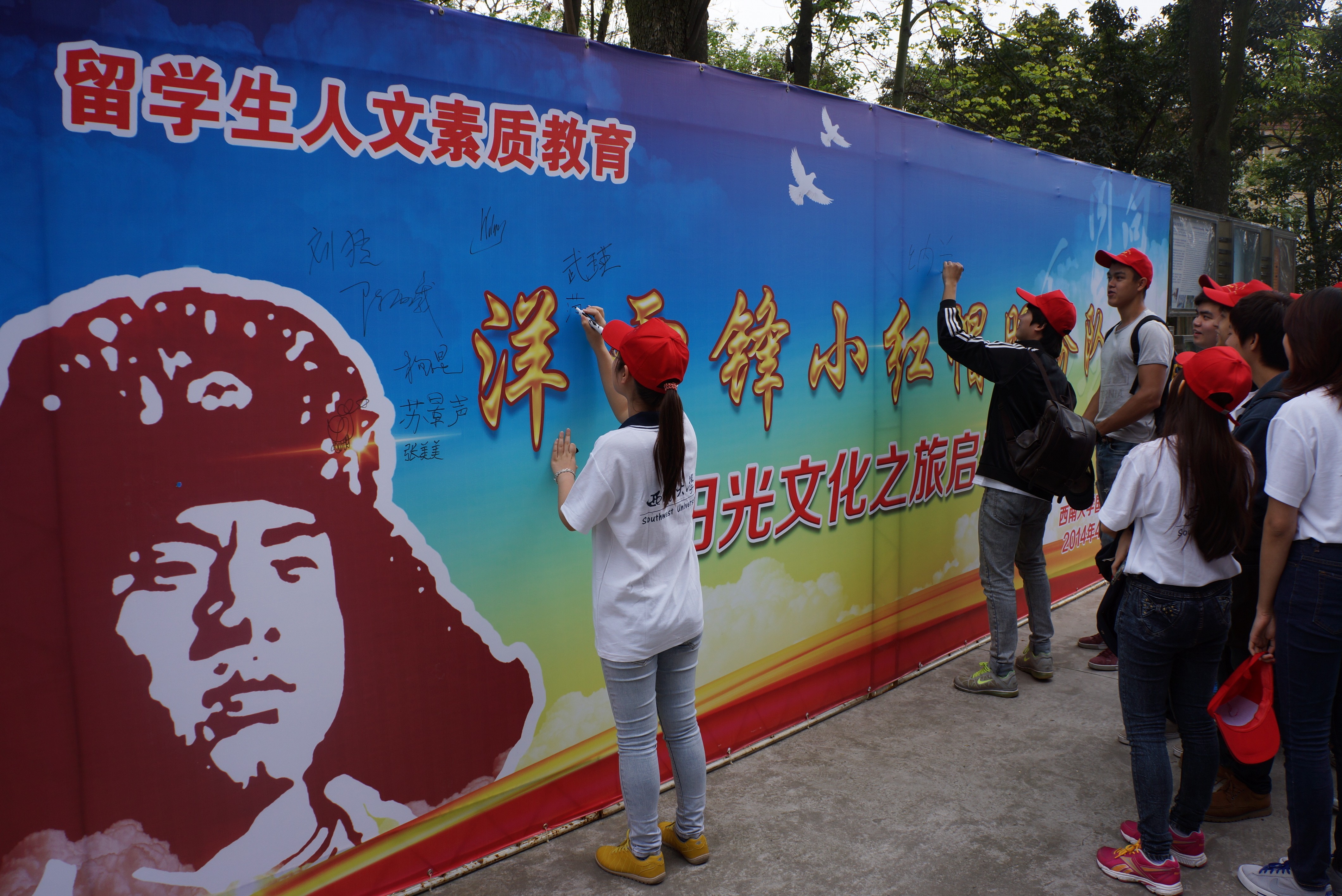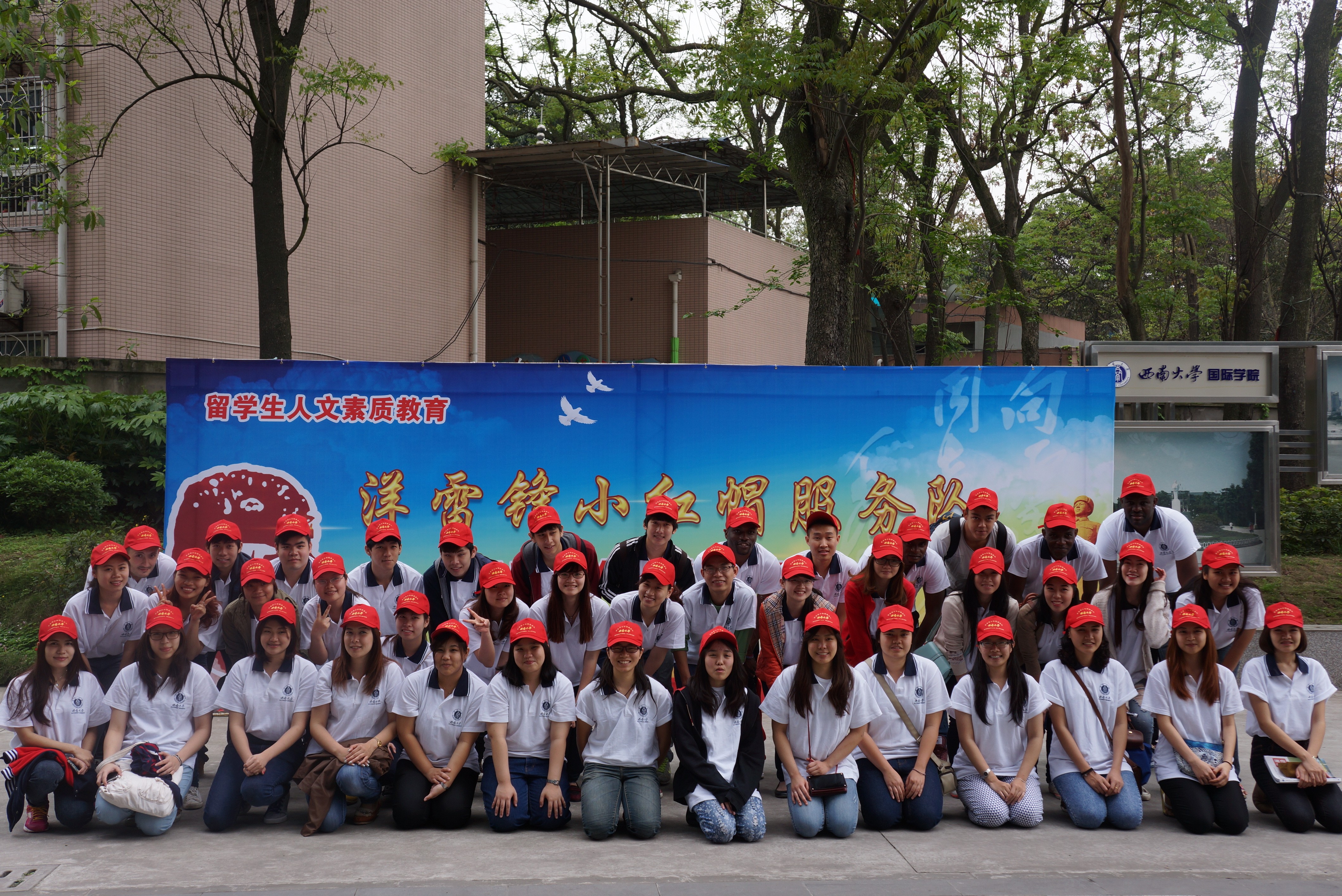 西南大学"洋雷锋"小红帽服务队成立