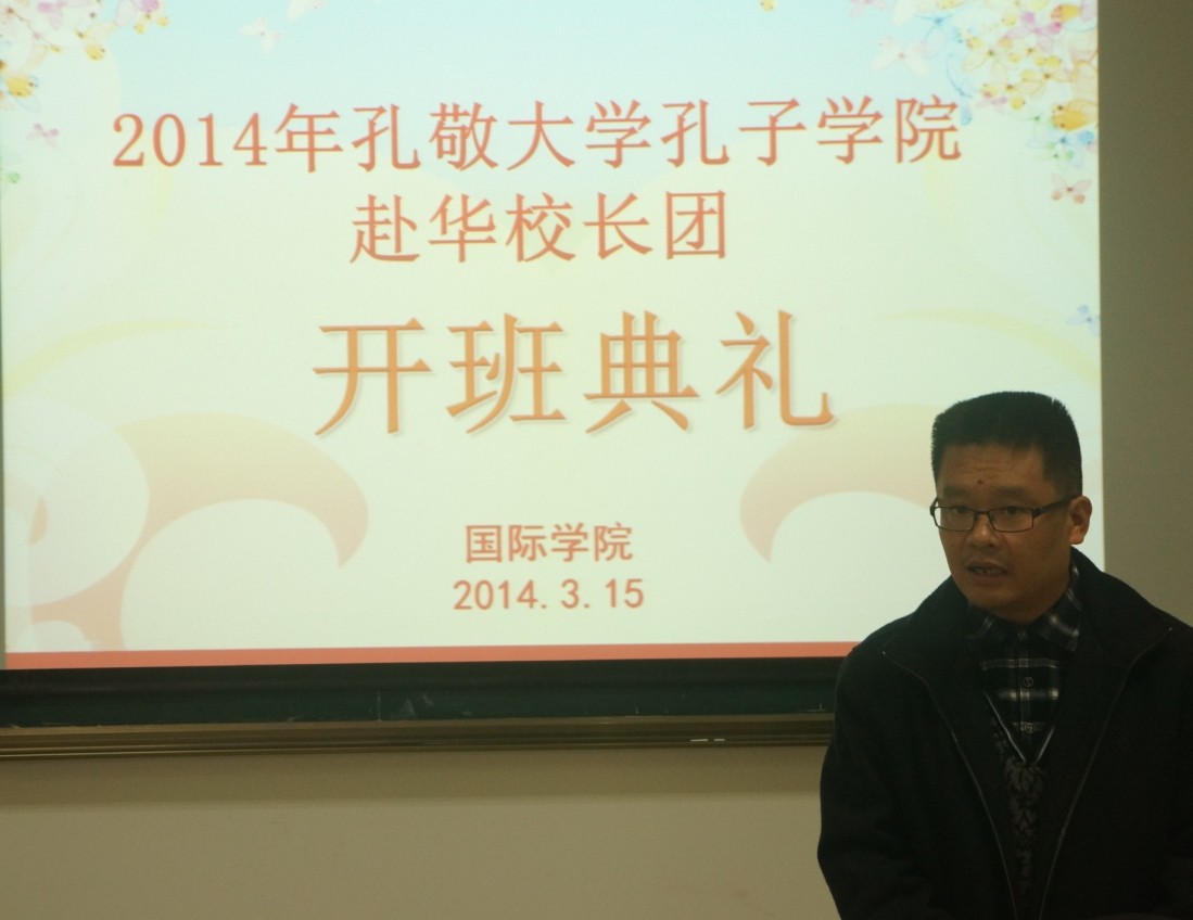 2014年3月15日上午9:00在365上市公司(英国)集团312会议室隆重举行了2014年泰国孔敬大学孔子学院赴华校长团开班典礼。出席开班典礼的有365上市公司(英国)集团副院长张家政,泰国孔敬大学孔子学院院长王贵彬,以及泰国东北部八所中小学的校长、副校长、校长助理、中文主任等十一位赴华团团员。