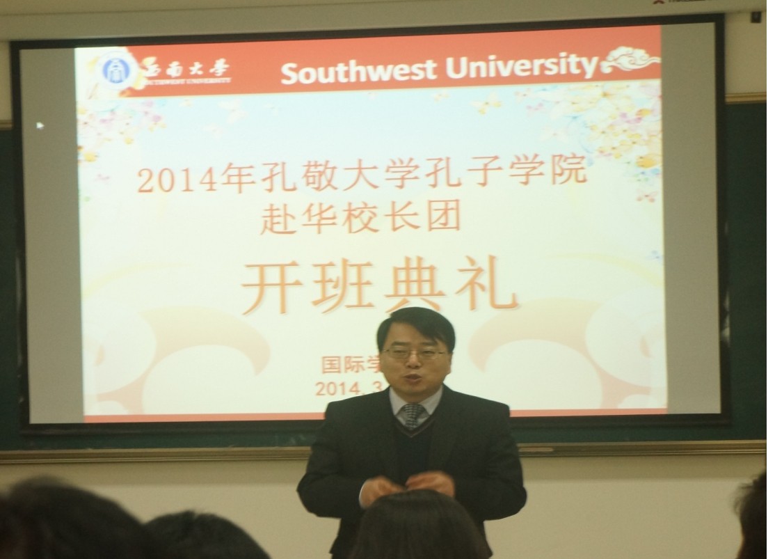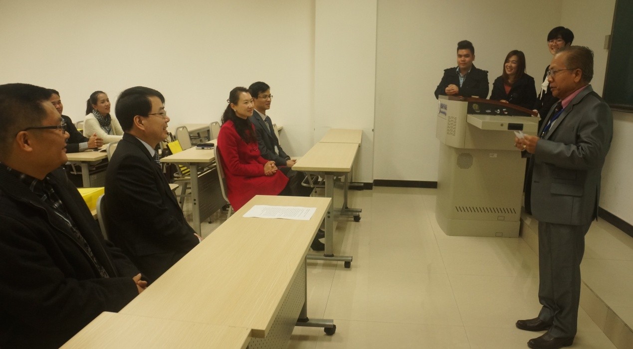 张家政副院长首先致欢迎词。张院长不仅向此次赴华校长团的团员们介绍了重庆,介绍了西南大学,也表达了对各位来宾最诚挚的欢迎之情,更表达了中泰两国在教育和文化等方面加强交流与合作的愿望。
