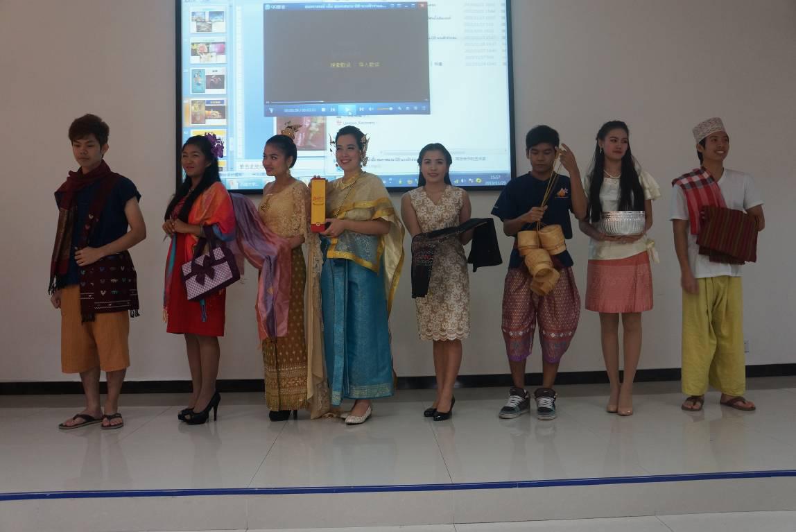 第二场紧扣本届国际文化节“中国梦·世界梦”的主题。分别由泰国、哈萨克斯坦、韩国和柬埔寨的同学共同完成。首先是微笑之国——泰国,他们在“迷你的泰国”的主题下对泰国进行了全方位、多角度的介绍。让我们深入了解到泰国的地理位置、国花、寺庙、饮食、服饰、教育、经济、和文化艺术等。泰国留学生以他们的热情和微笑赢得了大家持久不断的掌声。接着上场的是一个年轻而富有活力的国家——哈萨克斯坦。一首哈萨克民歌把我们瞬间从热情奔放的泰国带到了一个广阔并且带有伊斯兰风情的国家。他们有着最美的女孩,最极限的运动,最美味的食物,最坚定的民族信仰。随后,一阵韩流来袭,“疯狂的韩国”开始了他们含蓄而又温婉的介绍。关于国情,关于服饰,关于美食,关于旅游,关于文字、语言等。让台下的观众仿佛置身于汉拿山、济州岛。最后出场的是一个古朴、神秘的国度——柬埔寨。柬埔寨留学生们精彩全面地介绍了他们的国家,同时还介绍了柬埔寨与中国的渊源。