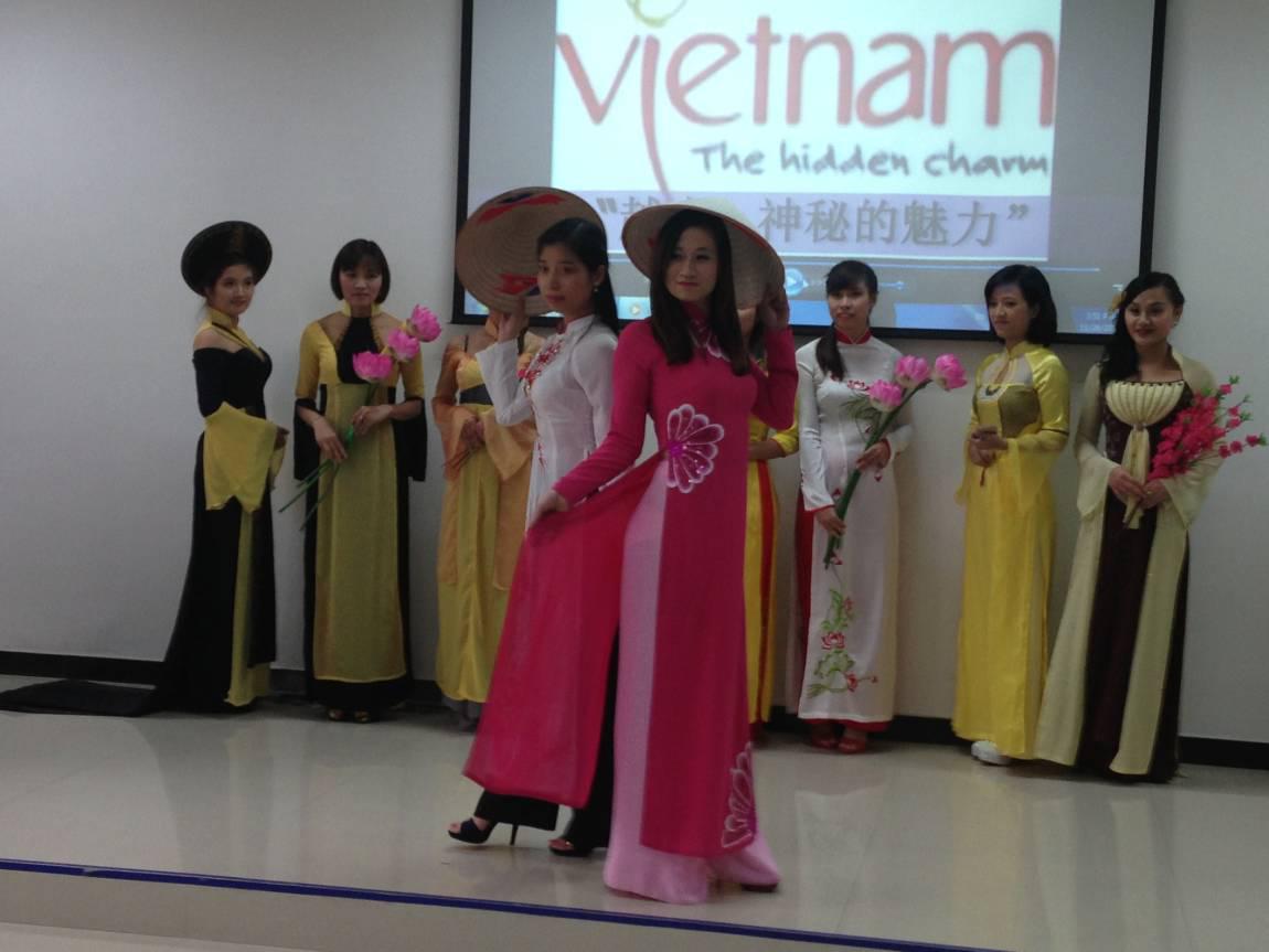 第一场名为“美丽•越南”。此次论坛现场人声鼎沸,活动内容新颖,形式多样。首先由越南主持人介绍了越南的基本情况,包括地理位置、重要城市、经济、文化、美食、民俗、货币等。通过各种内容展示,把现场的同学带到了一个神秘而又新奇的国度,给台下的观众带来一波波的强烈视觉冲击;彰显青春魅力和民族特色的服饰表演把论坛推向高潮。紧接着由365上市公司(英国)集团邱睿老师点评,她指出,文化的意义在于吸引,在于兴趣,而文化更重要的意义在于体验。随后,精彩的问答轮番上演,中越学生互动环节以问答的形式展开。这个环节让我们看到了作为越南留学生展示自己国家风采的愿望,同时我们也看到中国学生了解世界、展现自我的愿望。