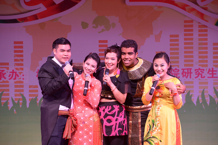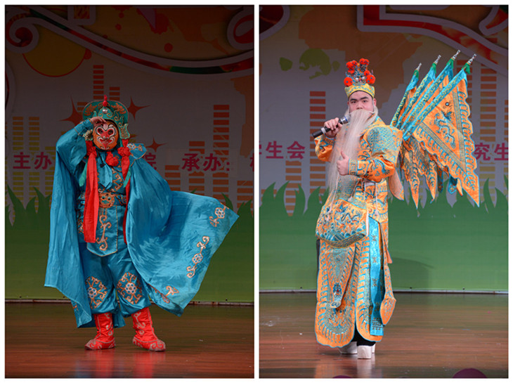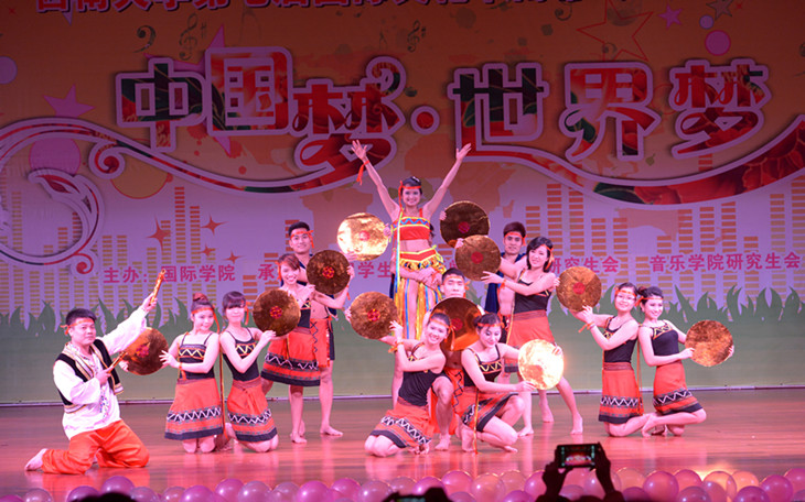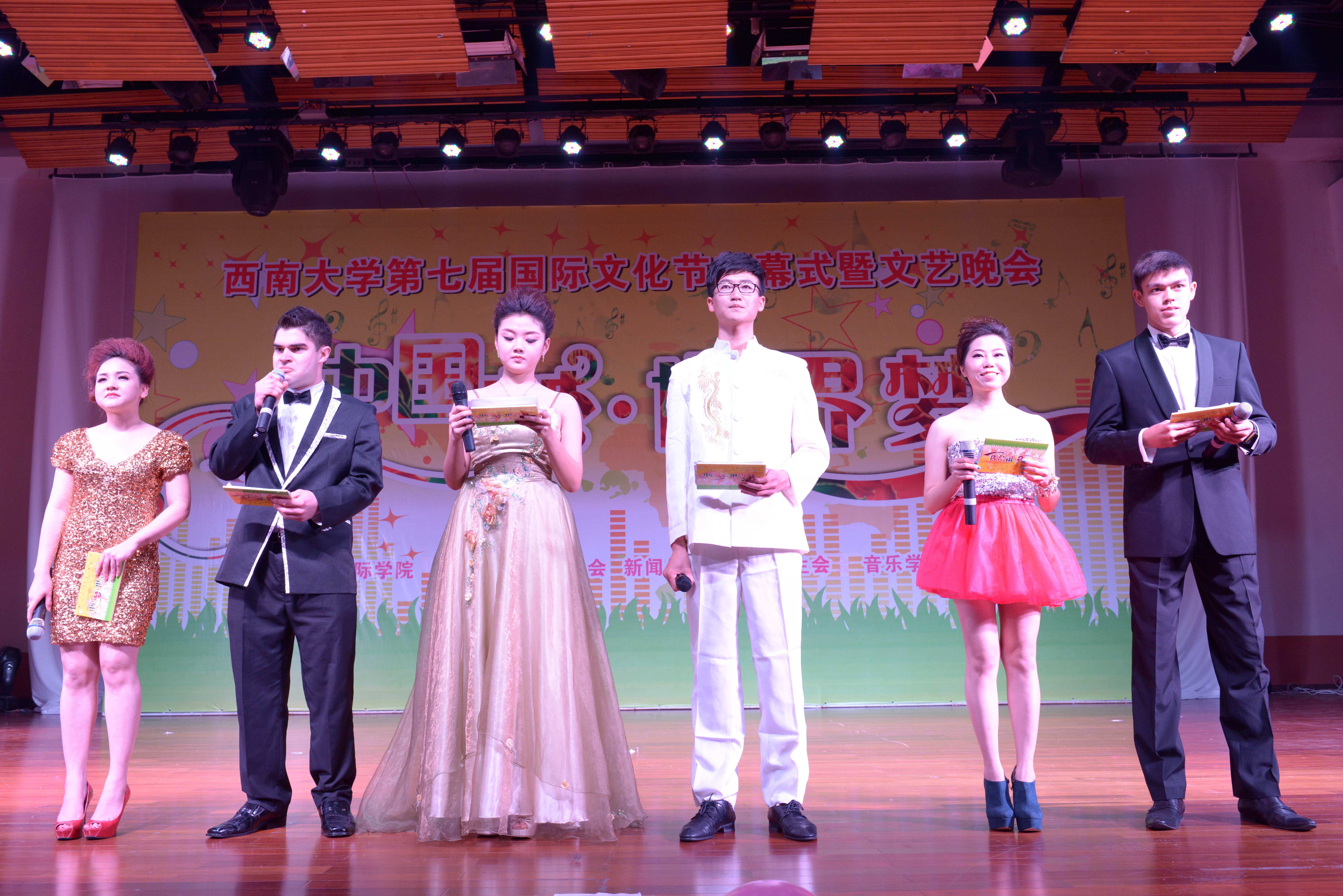颁奖环节结束后,文艺晚会正式开始。本场晚会节目精彩纷呈,留学生们个个拿出看家本领,各显神通,为我们奉上了一场别开生面的视听盛宴。不仅有越南、哈萨克斯坦、柬埔寨、蒙古、非洲传统舞蹈表演,也有泰国、俄罗斯、美国等各国歌曲串烧。泰国学生罗俊勇带来的京剧《定军山》选段博得现场观众声声叫好。来自埃及、泰国和越南的留学生们上演了一台多国音乐剧《那些年》,带我们领略各国风情的同时,也让我们了解到留学生们在西南大学收获的友谊与温情。各国留学生们还精心编排了一出小品《真假状元》,引得现场观众阵阵欢笑。在南太平洋国舞蹈节目中,来自汤加、萨摩亚的留学生舞蹈演员们频频下台与观众互动,活跃现场气氛,把晚会推向了高潮。本届国际文化节受到社会各界广泛关注,更得到各兄弟院校的鼎力支持。来自西大附中的熊桓小朋友带来的川剧变脸表演以及北碚活力工场舞团Future Star Belly Dance的肚皮舞为晚会增色不少。华中师范大学的留学生代表们更是远道而来,亲临晚会现场,不仅带来了精彩的节目,也加深了两校留学生之间的互动与交流。