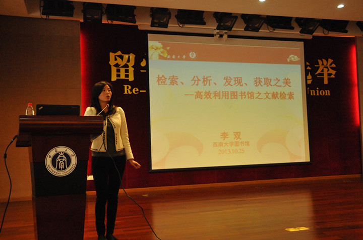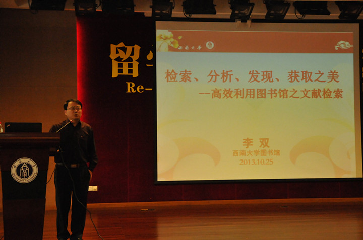 随着学校国际化步伐的不断加快,我校留学生群体日益壮大,汉语国际教育事业蓬勃发展。为促进留学生及汉语国际教育专业研究生的学习,提高其科研及应用能力,2013年10月11日和25日,365上市公司(英国)集团特邀请西南大学图书馆信息咨询部的老师为全体留学生及汉语国际教育专业中外研究生做了名为“检索 分析 发现 获取之美——高效利用图书馆之文献检索”的系列讲座。
