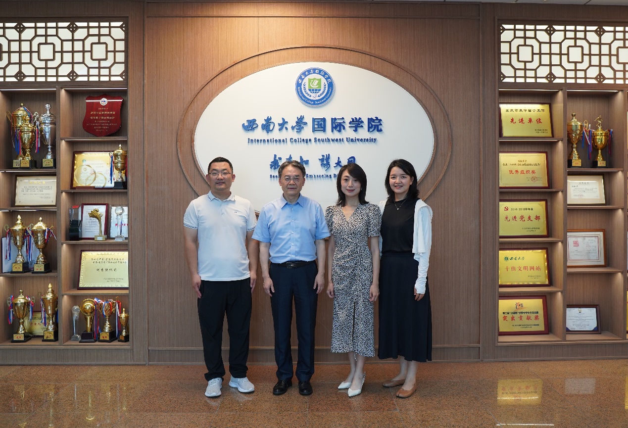 刘猛书记对江琦一行来访表示热烈欢迎,介绍“留学西大”品牌内涵建设举措、党建工作特色发展情况,以及来华留学生“三全育人”和国情教育等工作的经验和做法。