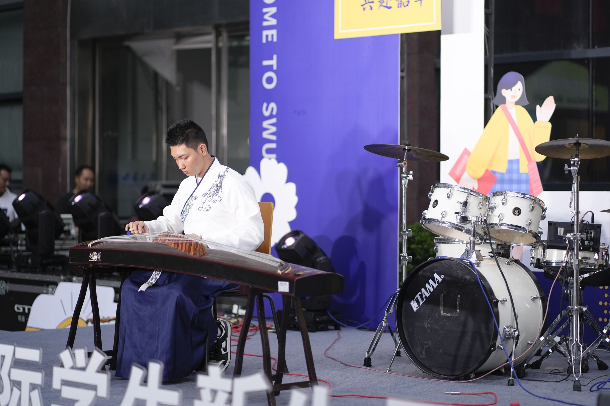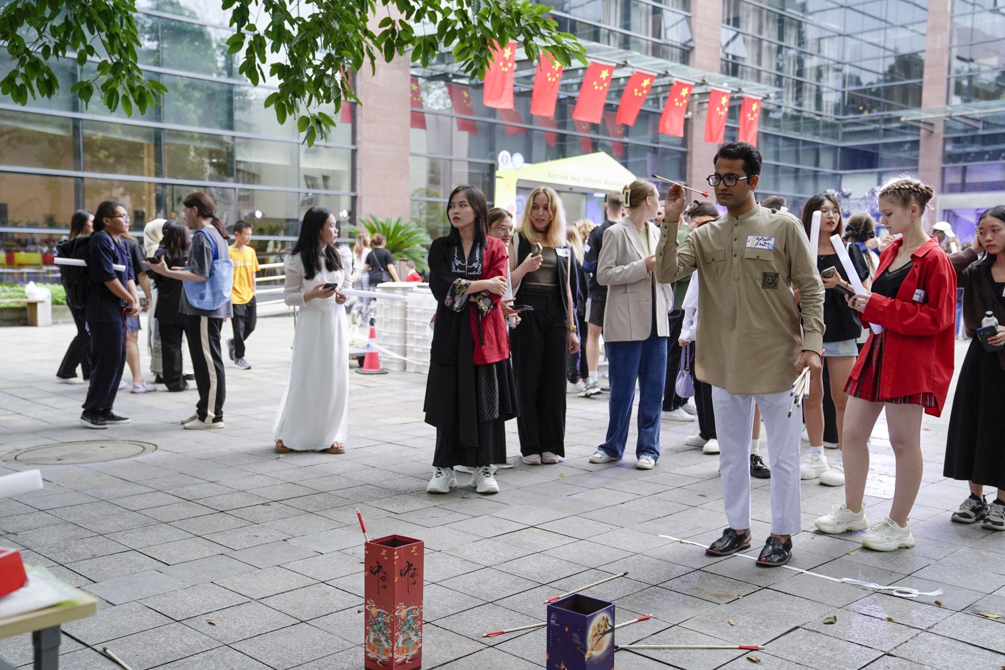 伴随夜幕降临,吉他弹唱组合、达尼乐队以及古筝弹奏组等相继登台演出,将现场气氛推至高潮。与此同时,套圈、投壶等传统游戏区及中华茶点区也广受欢迎。50余个国家的国际学生们停不下来的阵阵欢呼、集体wave都是本次活动跨越文化鸿沟,促进新生情谊的见证。