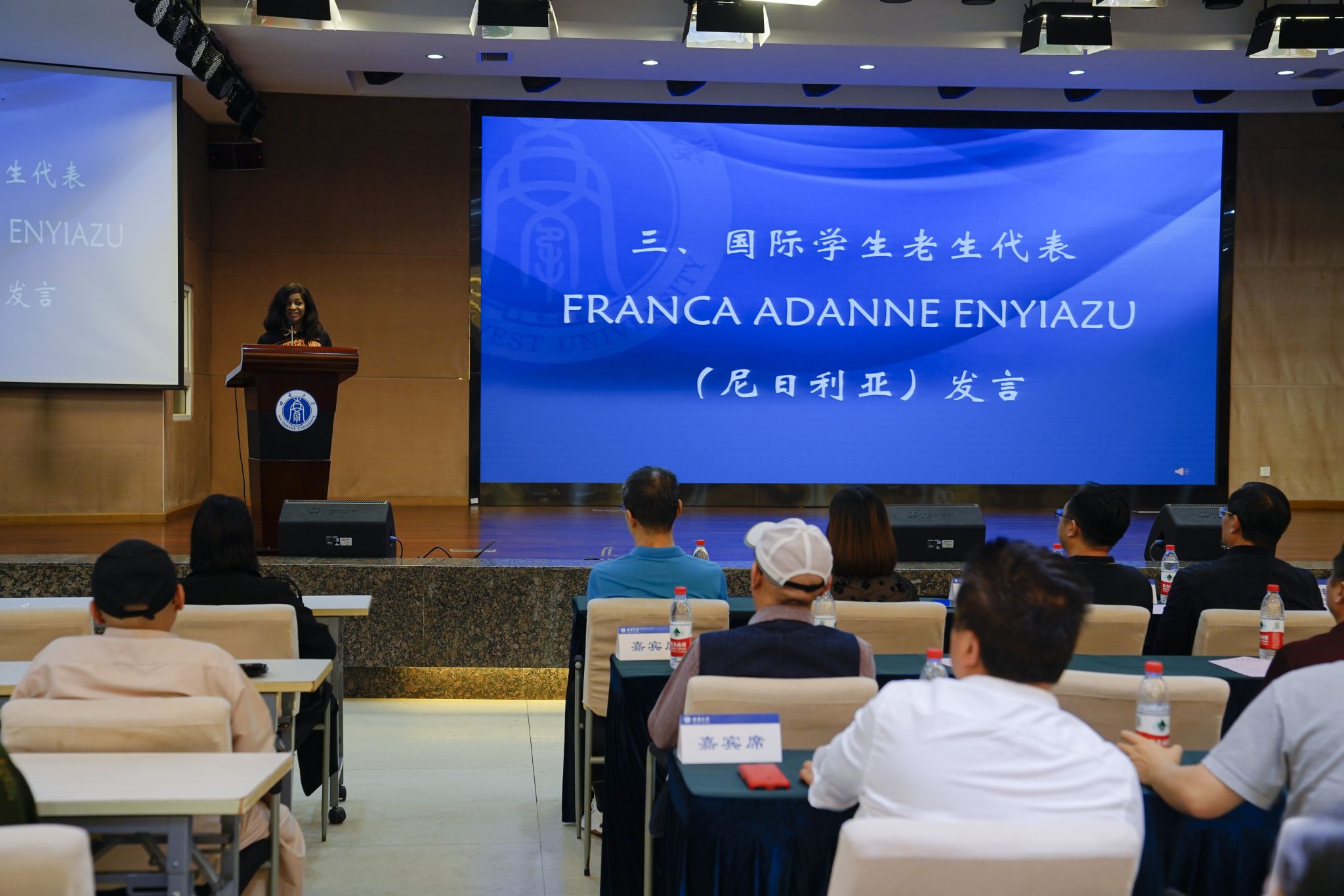 来自尼日利亚的老生代表方雯认为西南大学具有全球最好的教育基因,她鼓励新生在多元文化的校园环境中尽情挥洒自己的魅力。来自摩洛哥的新生代表法德瓦立志成为中国与他国文化交流合作的文化使者,并与现场的留学生相约在今后的学习中要积极进取,共同进步。