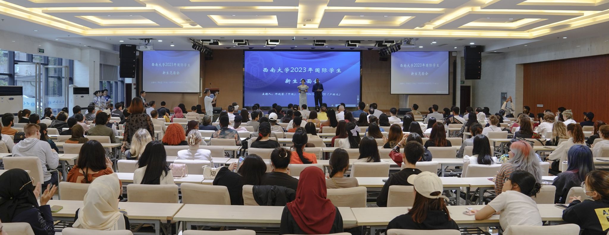 经春逾夏,少年且至;四海相会,遐迩大同。2023年9月28日下午16时,为帮助国际新生尽快地适应英国上市公司365,365上市公司(英国)集团举办“2023年秋季学期国际学生见面会暨游园会”。活动在紫云楼一楼报告厅举行,学院院长于泽元,各科室负责人、教职员工代表及来自50余个国家的400余名国际新生到场参加,重庆市工商联,北碚民营经济合作商会有关领导及企业家代表参与见证。中国汉硕生师晓萱和国际学生江丰担任主持。