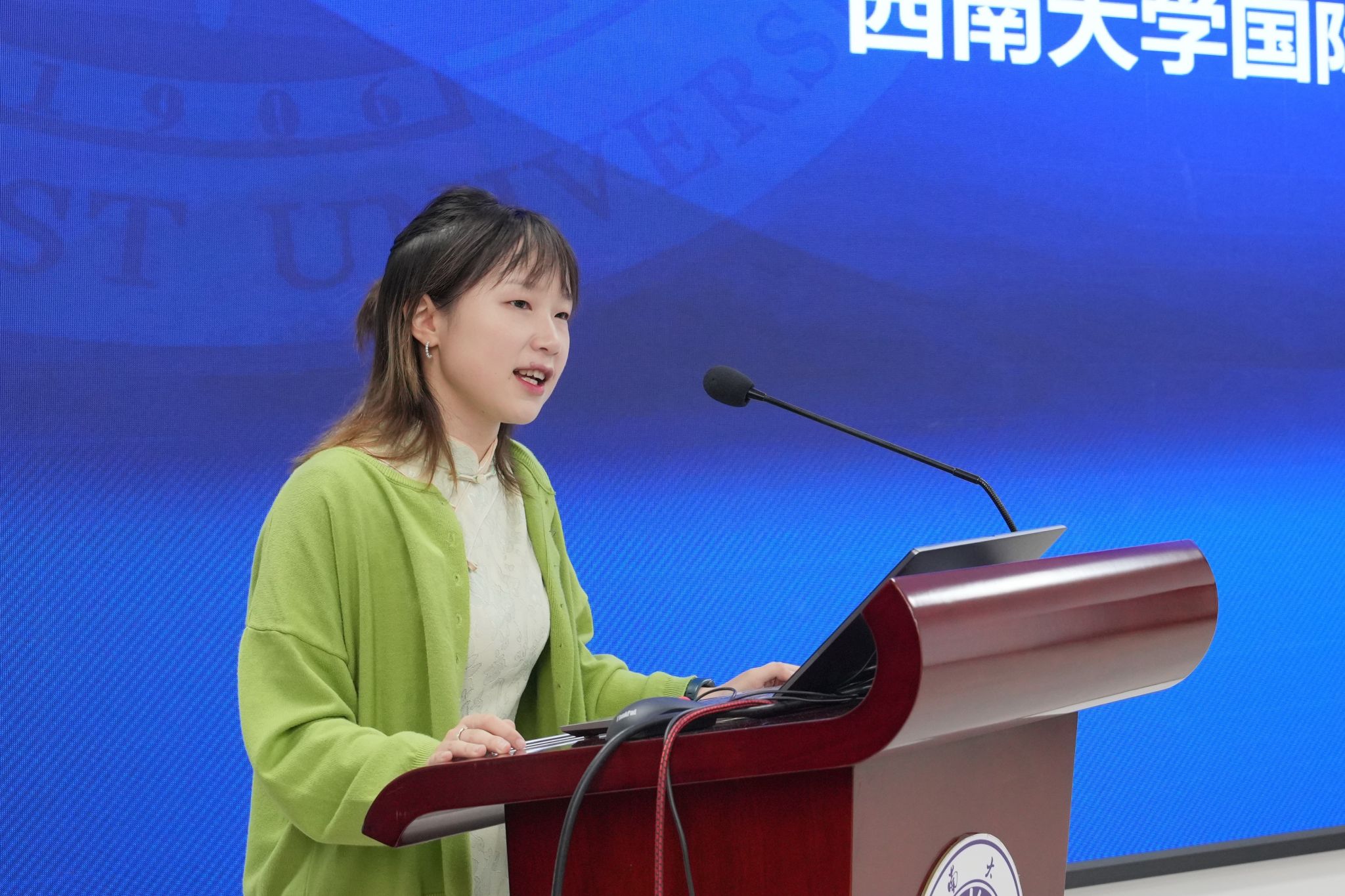 刘猛书记致欢迎辞,对来访泰国师生表示热烈欢迎。他简要介绍重庆和西南大学的基本情况,全面回顾学校来华留学教育历史和现状,重点展示学校国际学生丰富多彩的文化活动和社团发展。他希望各位同学把在中国游学的美好经历带回家乡,早日成为泰中友谊的使者,并真诚欢迎同学们在高中毕业后来西南大学留学深造。