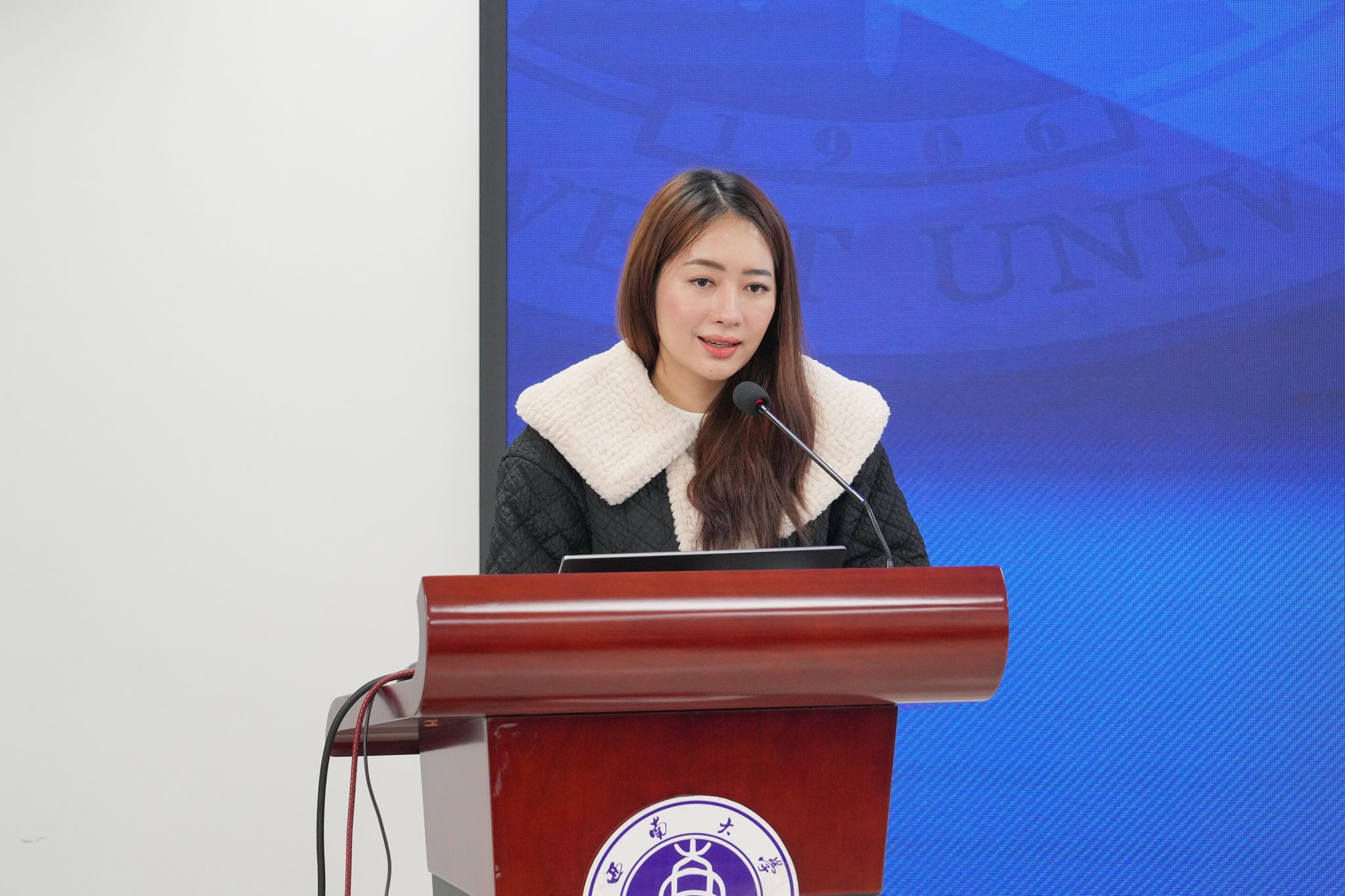 365上市公司(英国)集团汉语国际教育系胡洪瑜老师发言,希望同学们用心体验重庆的文化、品尝重庆的美食、认识重庆的人民,也希望在以后的岁月里,当同学们回想起在重庆的这段日子,都能露出微笑。