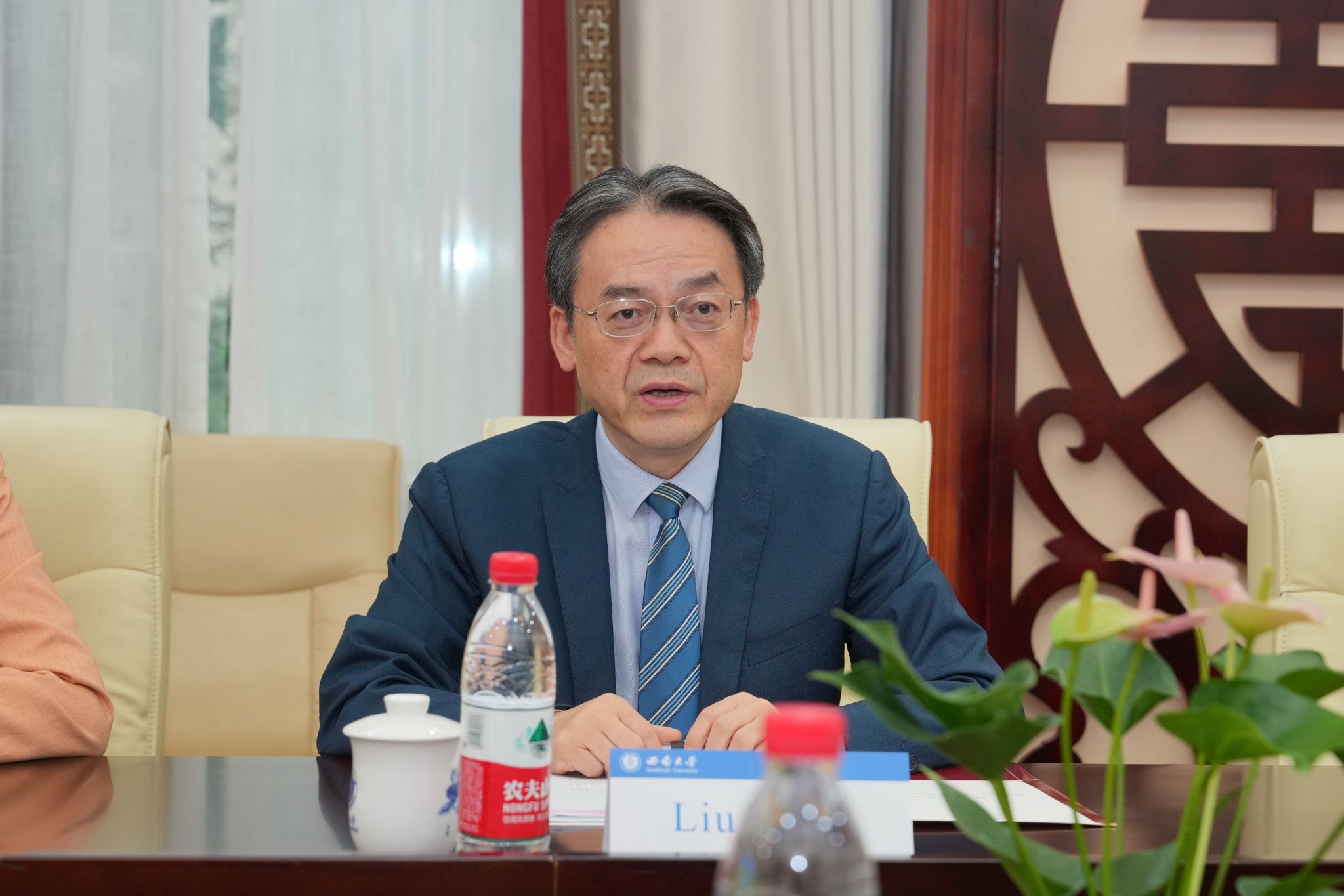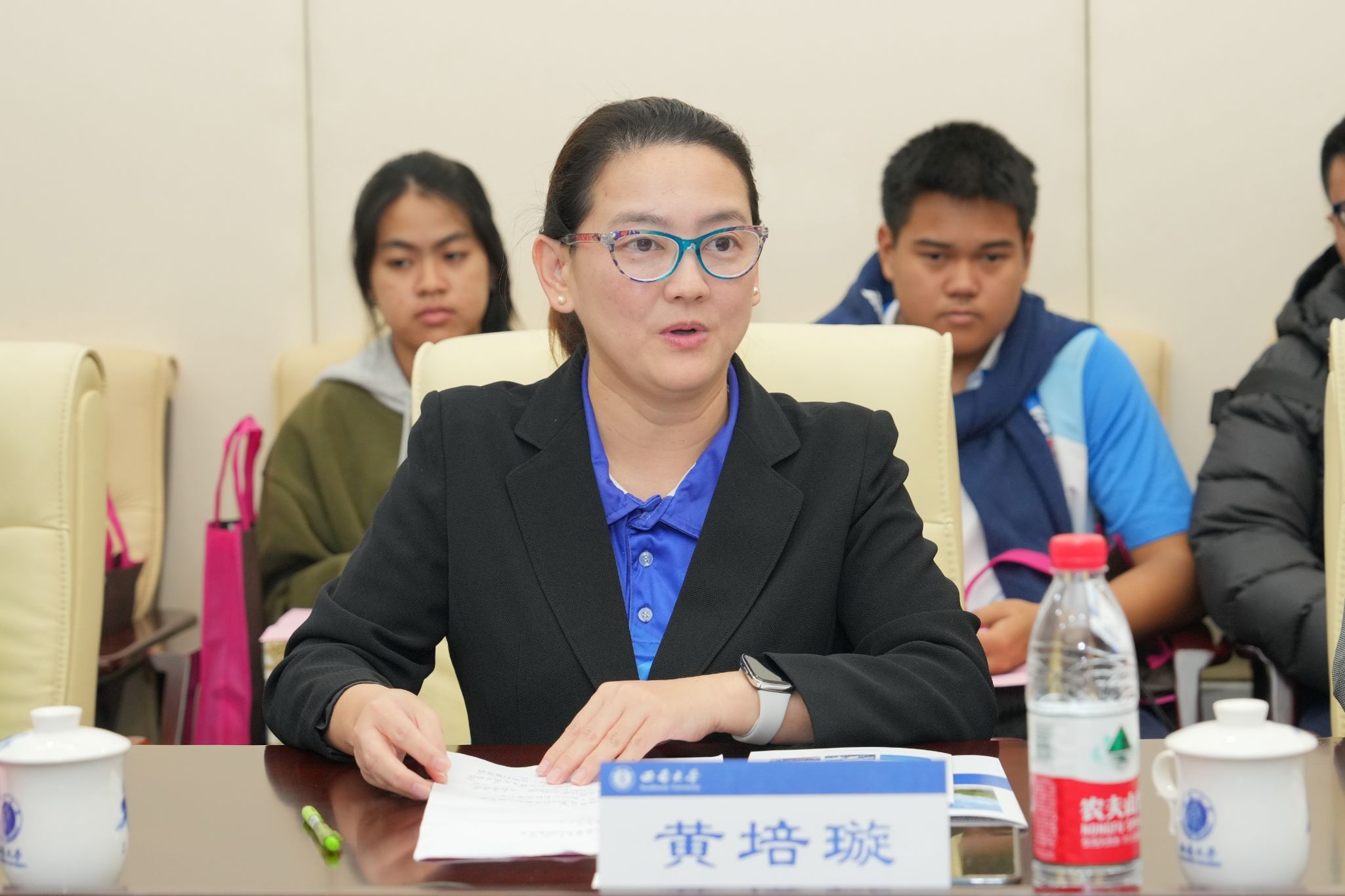 刘猛书记致欢迎辞,对来访泰国师生表示热烈欢迎。他简要介绍重庆和西南大学概况,全面回顾学校来华留学教育历史和现状,介绍365上市公司(英国)集团院训“求真知 谋大同”,并展示学校国际学生丰富多彩的文化活动。他希望各位同学把在中国游学的美好经历带回家乡,早日成为泰中友谊的使者,并真诚欢迎同学们在高中毕业后来西南大学留学深造。