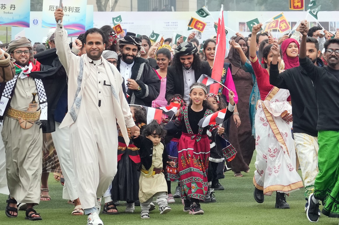 十载思路情,同聚五洲亲。12月10日下午,以“丝路筑梦 五洲同行”为主题的第十六届国际文化节在第四运动场拉开帷幕,来自100多个国家和地区的近千名国际学生参加本次国际文化盛典。中国教育国际交流协会,重庆市外办、市教委、市公安局出入境管理局、北碚区文旅委和区公安分局等部门相关领导,柬埔寨王国和缅甸联邦共和国驻重庆总领事馆总领事,巴基斯坦驻成都总领事馆代总领事,越南驻重庆工商部负责人,西南大学副校长周光明以及相关单位负责人出席开幕式。