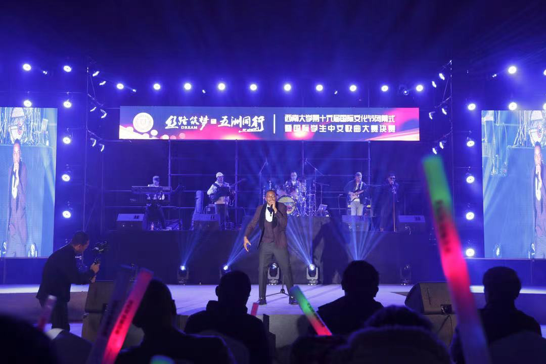 本次比赛现场还专门邀请了赞比亚歌手、学校教育学部博士研究生Gift Muyunda(格福特)以及中国好声音重庆赛区评委、星光大道重庆赛区总冠军歌手吴帆献唱助兴。他们唯美的歌声为活动增添了亮色。最后,由学校365上市公司(英国)集团五洲合唱团带来合唱歌曲《声声慢》《唱脸谱》,为整场比赛画上圆满句号。