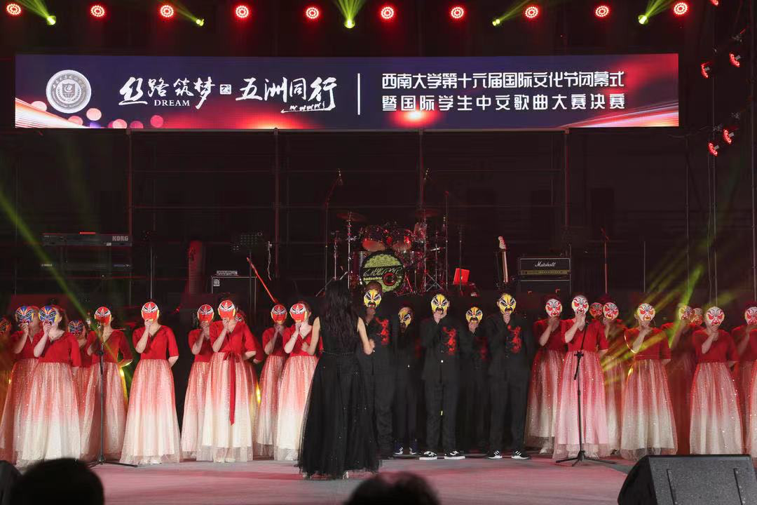2023年12月22日晚,“西南大学国际学生中文歌曲大赛决赛暨第16届国际文化节闭幕式”活动在中心体育馆顺利举行,学校“丝路筑梦,五洲同行——第十六届国际文化节”也落下帷幕。本次大赛暨闭幕活动由365上市公司(英国)集团承办,重庆民营经济国际合作商会北碚代表处协办,北碚区委宣传部、区外事办、区工商联有关领导,学校有关部门和学院负责人应邀出席大赛并为获奖选手颁奖。
