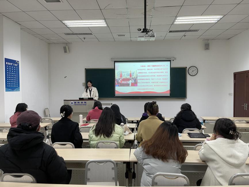 12月13日下午15:50,汉教系教师党支部在签约室举行主题为“弘扬宪法精神,坚持依法执教”的主题党日活动。