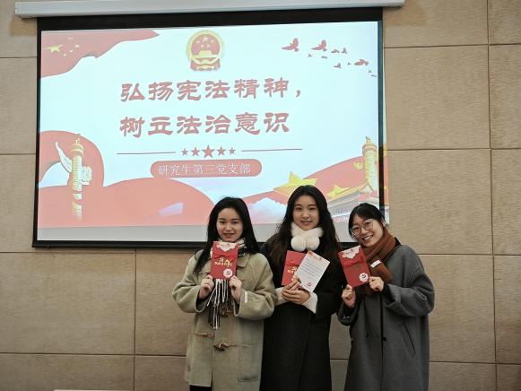 2023年12月15日上午10:30,研究生第三党支部在紫云楼310室开展“弘扬宪法精神,树立法治意识”的主题党日活动。