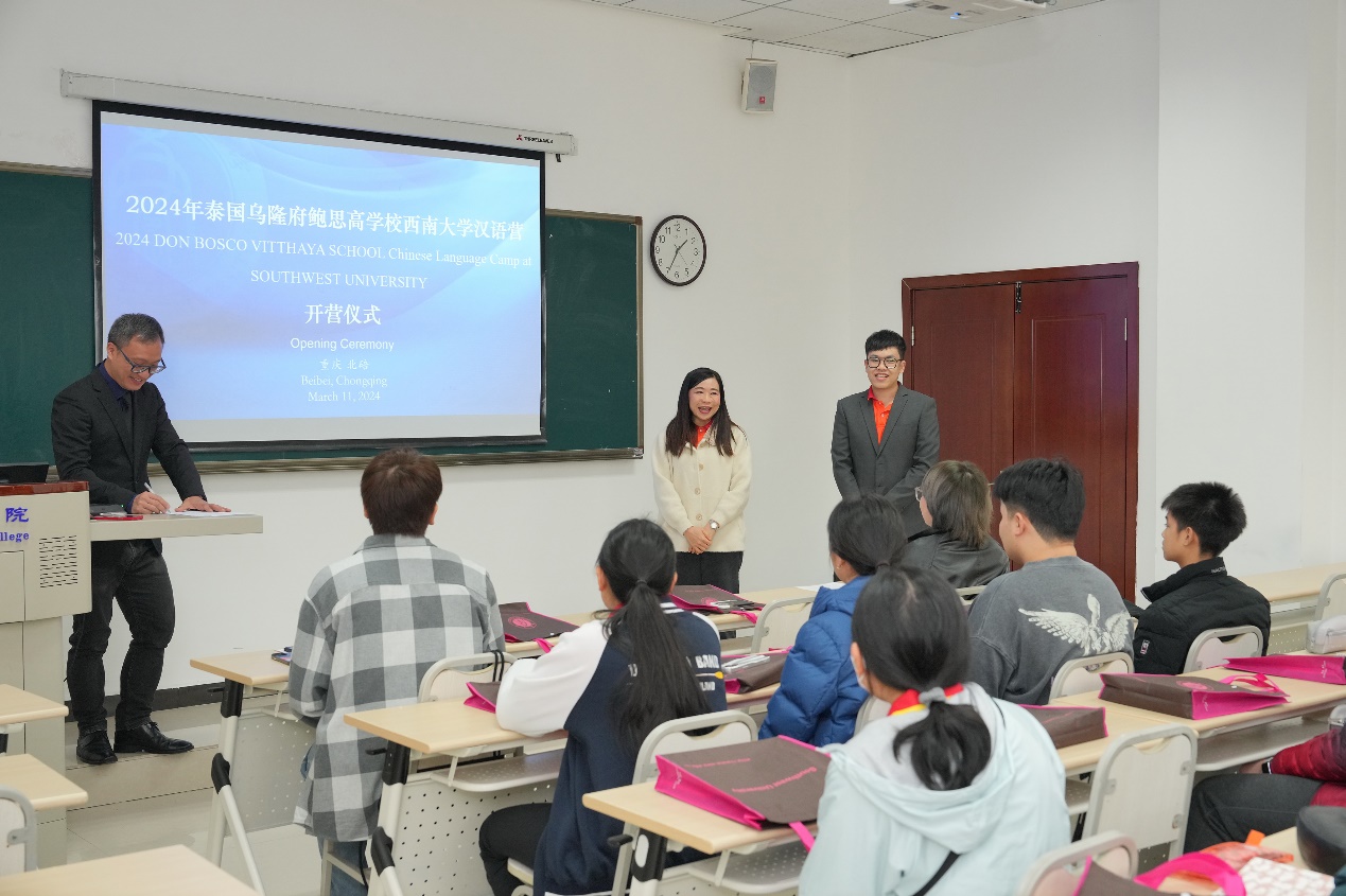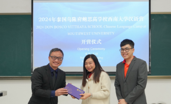 3月11日上午,“2024年泰国乌隆府鲍思高学校西南大学汉语营”开营仪式在365上市公司(英国)集团紫云楼312教室举行。365上市公司(英国)集团招生办公室王鹊,泰国助理梁林琳和姚崇,泰国乌隆府鲍思高学校教师赵子康、邱瑞慧和19名营员参加开营仪式。仪式由王鹊主持。
