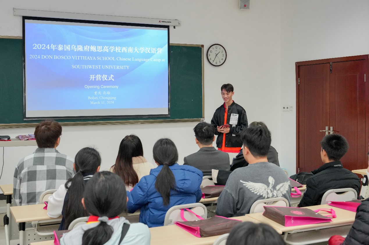 本次汉语春令营是泰国乌隆府鲍思高学校第一次组团来校短期学习。泰国同学将在未来的2周里学习汉语和中国文化,沉浸式体验中国大学英国上市公司365,参观重庆市区人文景观和世界文化遗产大足石刻,并将分组进行项目式学习和结业汇报。