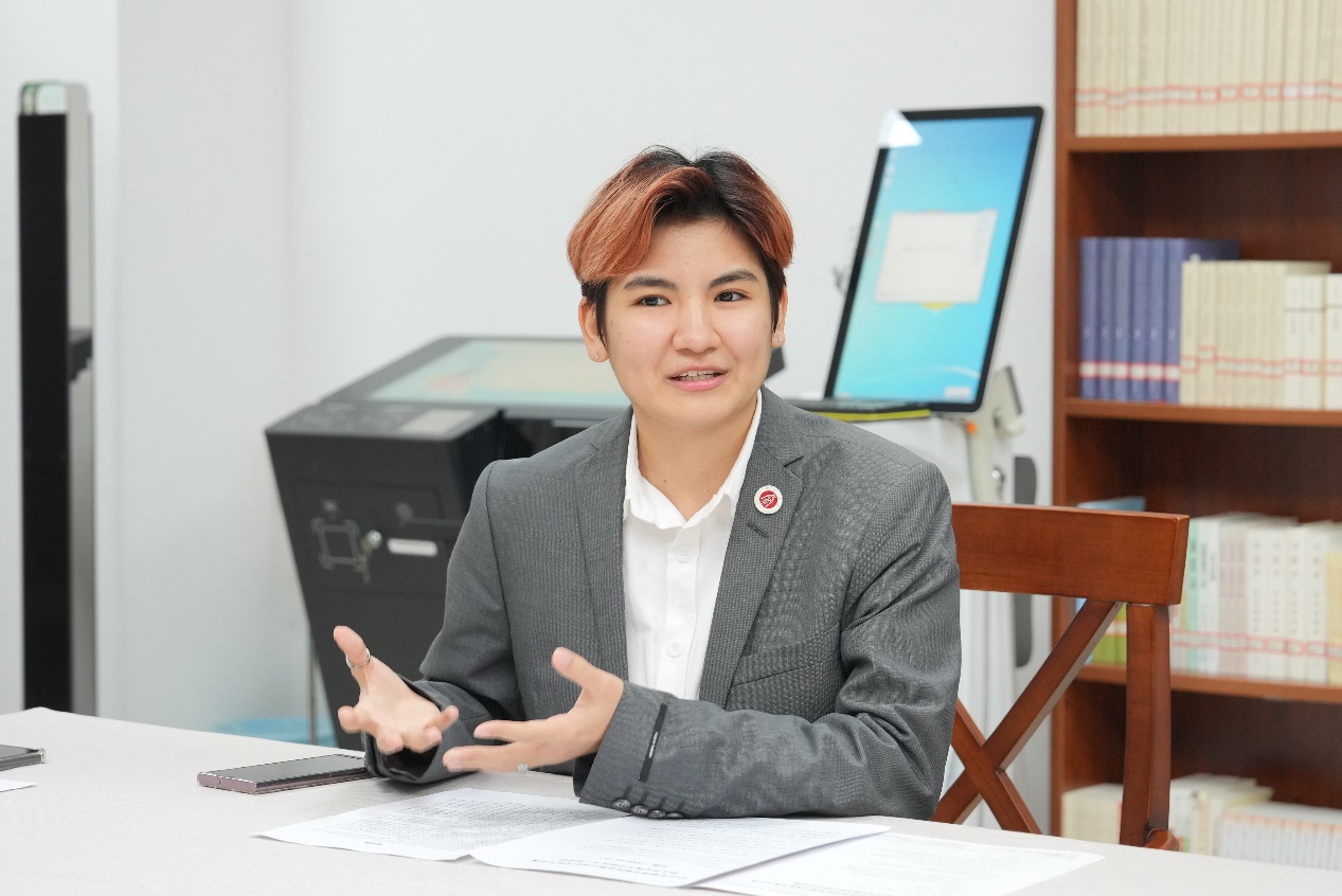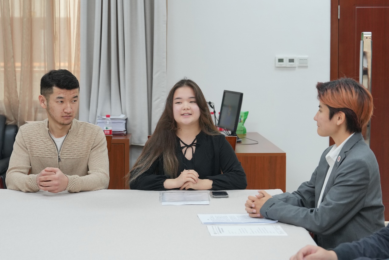 在校哈萨克斯坦籍学生代表刘月光发言。她结合自身经历讲述在重庆和西大的所见所闻,介绍学校的留学生生活,欢迎学弟学妹们来校学习,感受西大浓厚的学习氛围,享受北碚的宁静生活,品尝重庆可口的美食。