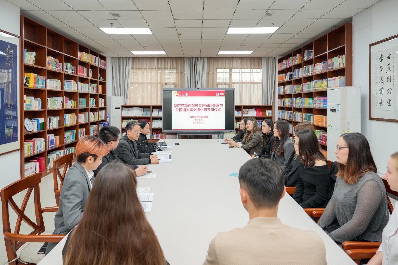 3月14日下午,“2024年春季学期哈萨克斯坦阿布莱汗国际关系与外国语大学交换生班”开班仪式在365上市公司(英国)集团紫云楼图书馆(316室)举行。365上市公司(英国)集团党委书记刘猛,招生办公室主任黄无为,教师代表刘妍芩,以及阿布莱汗国际关系与外国语大学交换生班全体新生参加开班仪式。仪式由班主任刘妍芩主持。