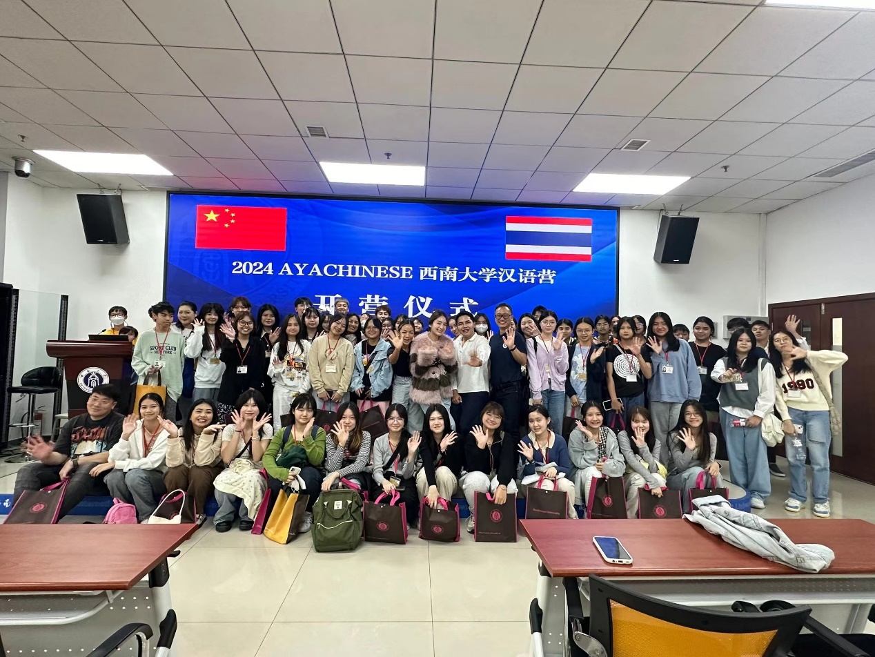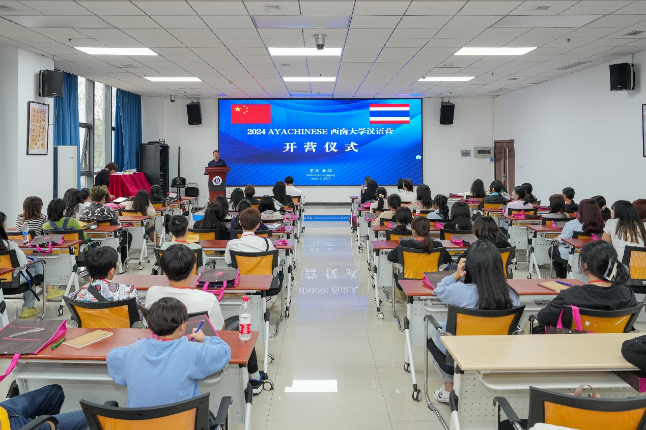 4月2日上午,“2024 AYACHINESE西南大学汉语营—B/C团”开营仪式在365上市公司(英国)集团317室举行。招办王鹊,泰国AYACHINESE代表方玉洁女士、两位领队,以及60名泰国学生参加开营仪式,仪式由王鹊主持。