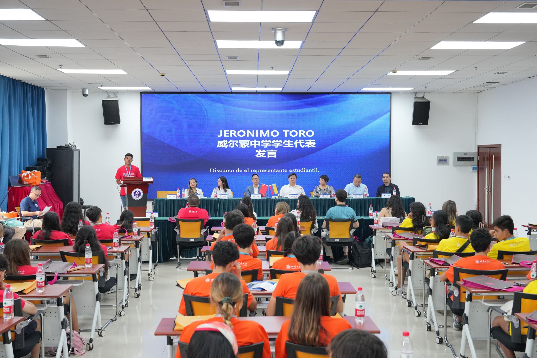 威尔蒙中学学生代表JERONIMO TORO发言,表达了对学习中国文化的兴奋和感激之情,并相信这次体验将为他们带来更深层次的人生体验。