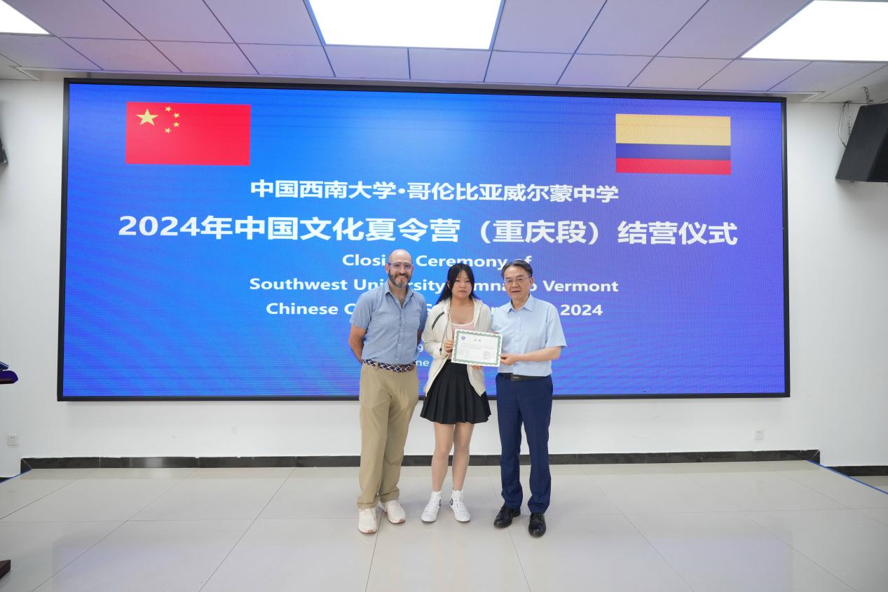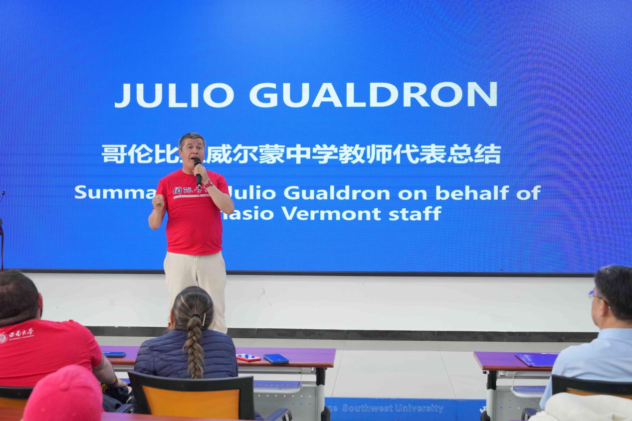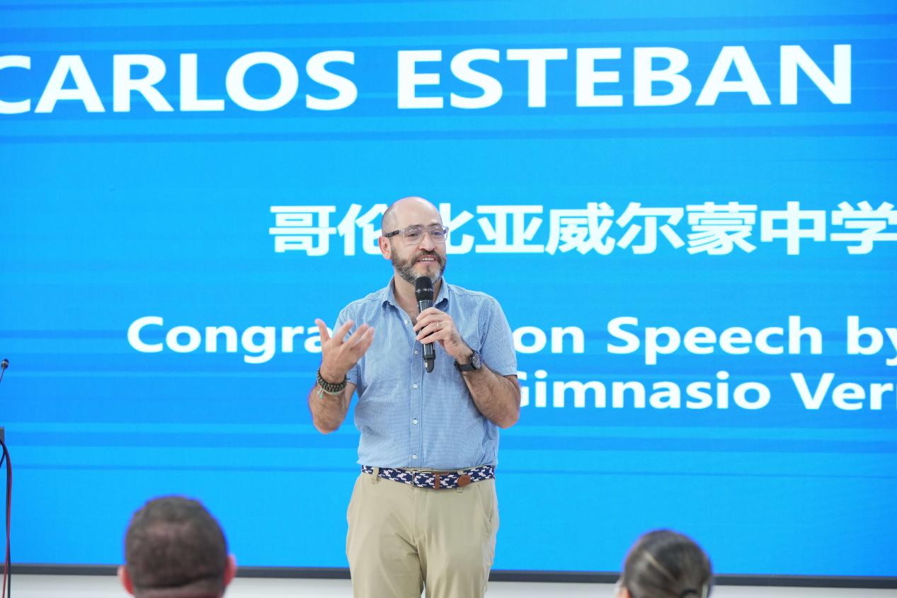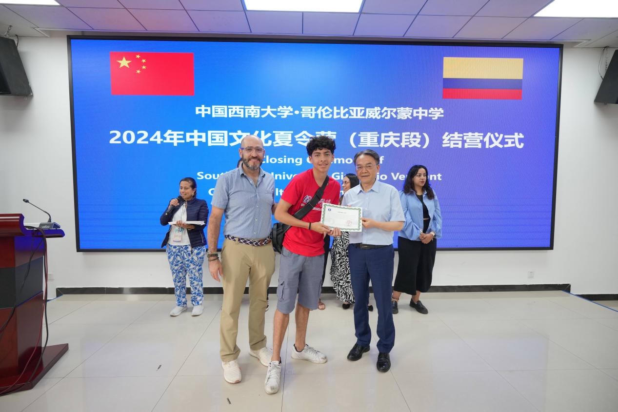 Carlos副校长祝贺大家顺利结业,他深情回顾自去年威尔蒙中学中国行加入重庆站以来,各方对于西南大学学习生活体验和重庆历史文化与现代都市风貌的高度认可,期待将西南大学和重庆作为该校中国夏令营的永久目的地之一,不断拓展哥方学生的视野,深化两国教育合作交流。