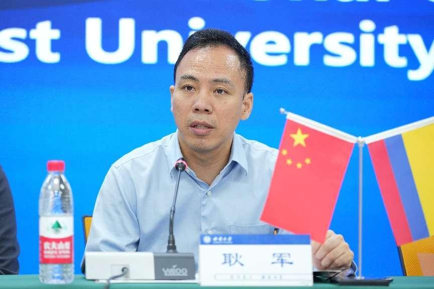 耿军副院长致欢迎辞,对哥伦比亚威尔蒙中学113名师生的到来表示热烈欢迎。他简要介绍重庆和西南大学的基本情况,全面回顾学校来华留学教育历史和现状,重点展示学校国际学生丰富多彩的文化活动和社团发展。他希望各位同学把在中国游学的美好经历带回家乡,早日成为哥中友谊的使者,并真诚欢迎同学们在高中毕业后来西南大学留学深造。