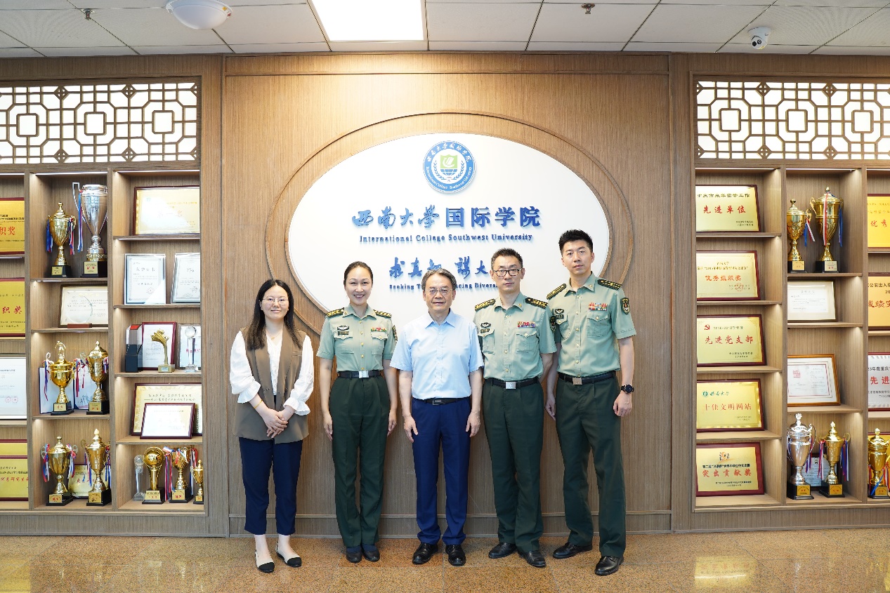 6月2 8 日上午,陆军勤务学院勤务训练基地职业教育中心大校刘晟、上校刘冬、少校李嘉哲一行三人来访,就来华留学生教育培养工作进行调研交流。学院党委书记刘猛,教工一支部书记翟二猛,教学办杨凌霄参加交流座谈会,会议由刘猛书记主持。