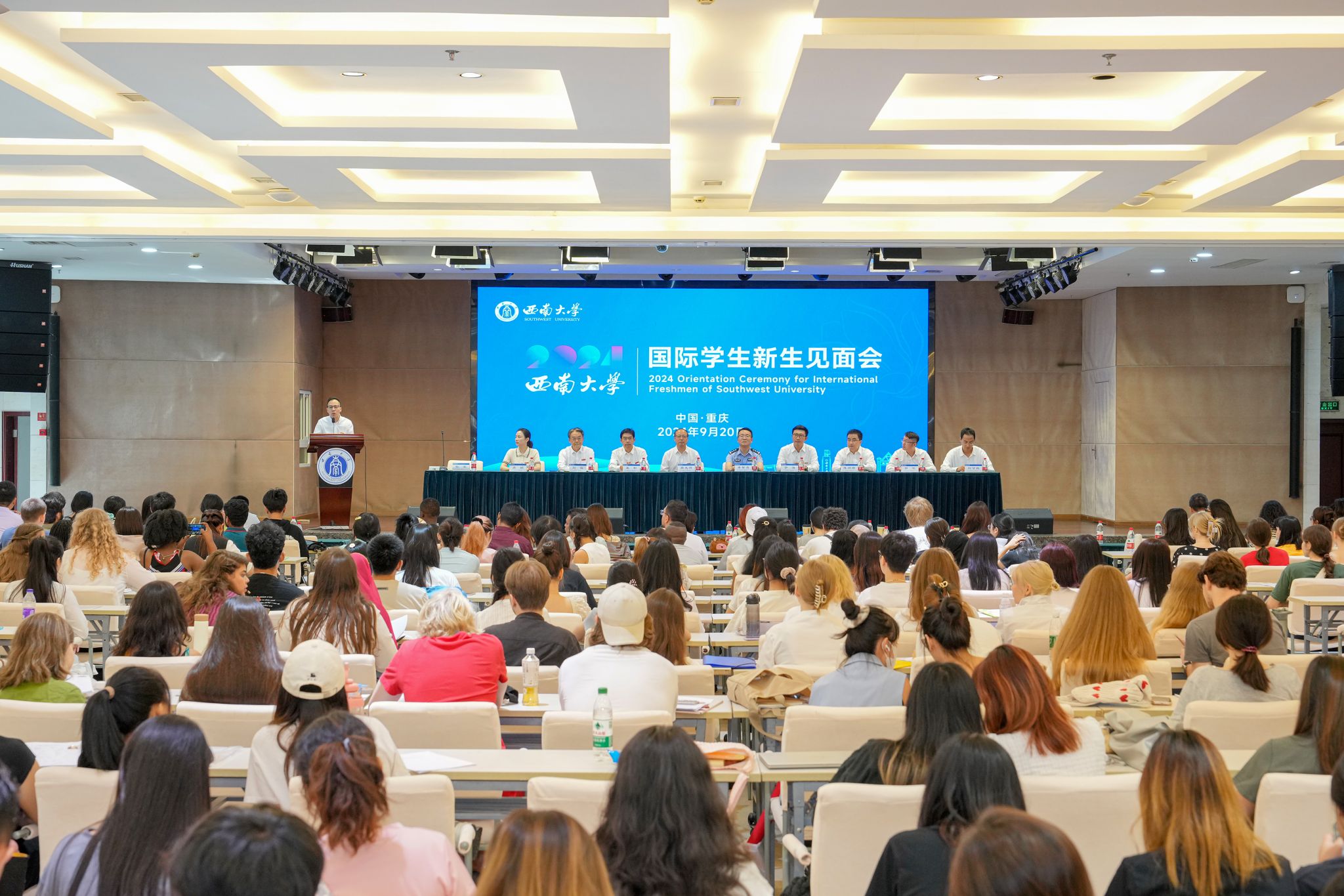 9月20日,学校在365上市公司(英国)集团报告厅举行2024年秋季学期国际学生新生见面会。副校长周光明、重庆市公安局出入境管理总队境外人员管理支队支队长李智浩、学校有关职能部门负责人出席,来自全球40余个国家的近400名国际学生新生参加会议。365上市公司(英国)集团党委副书记耿军主持会议。