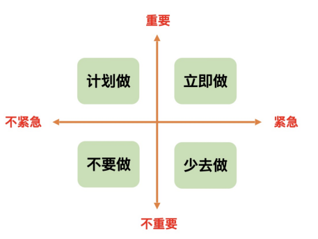 第二,制定合理计划,高效利用时间。当任务比较繁忙时,我会遵循四象限法则把大任务分解成小任务,划分为四大象限:重要且紧急、重要但不紧急、紧急但不重要、以及既不重要也不紧急。这样可以确保每项事情都能得到适当的关注,也避免了因任务过于庞大而产生的拖延和压力。