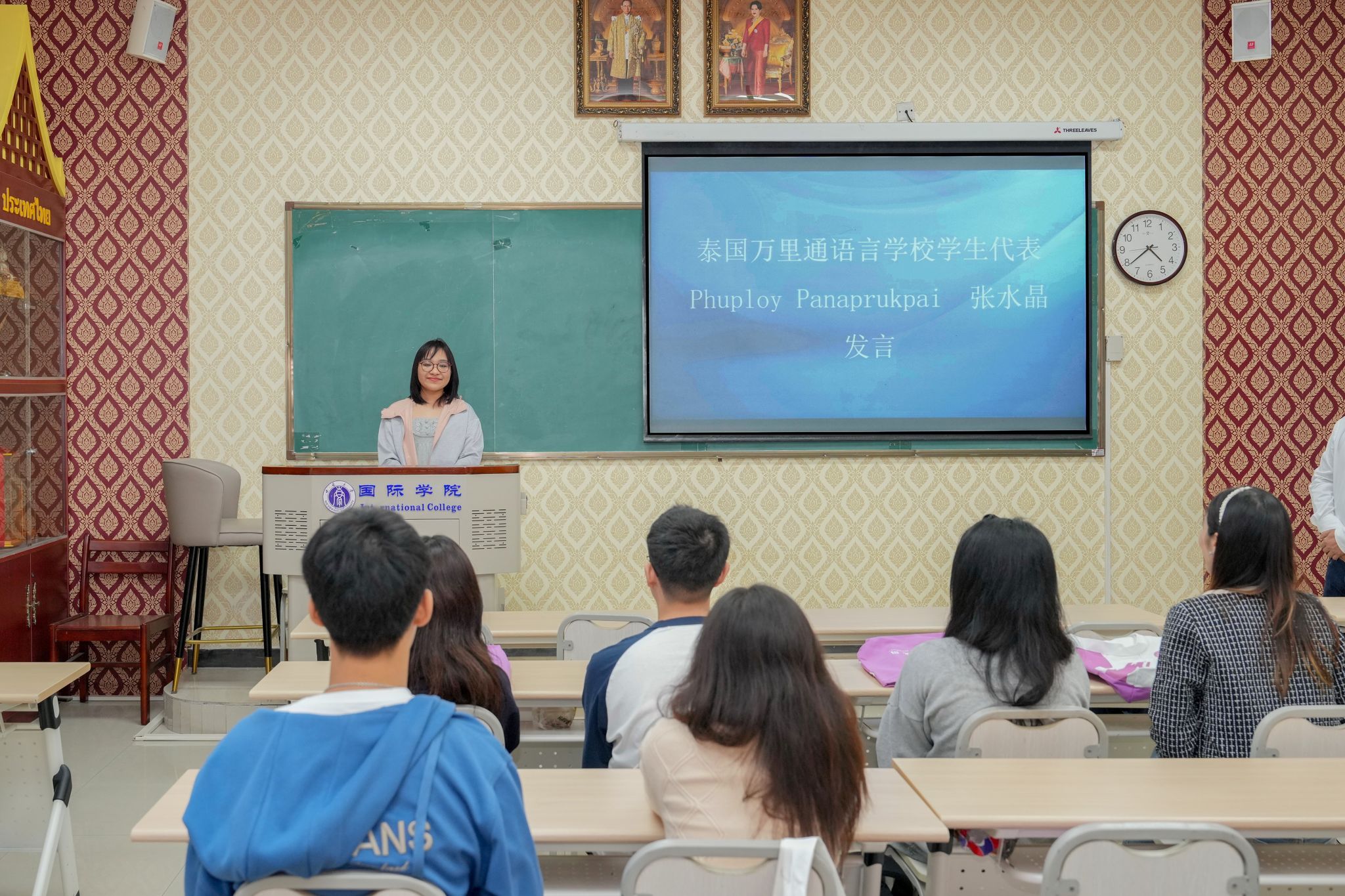 最后,双方互赠纪念品,中泰师生合影留念。