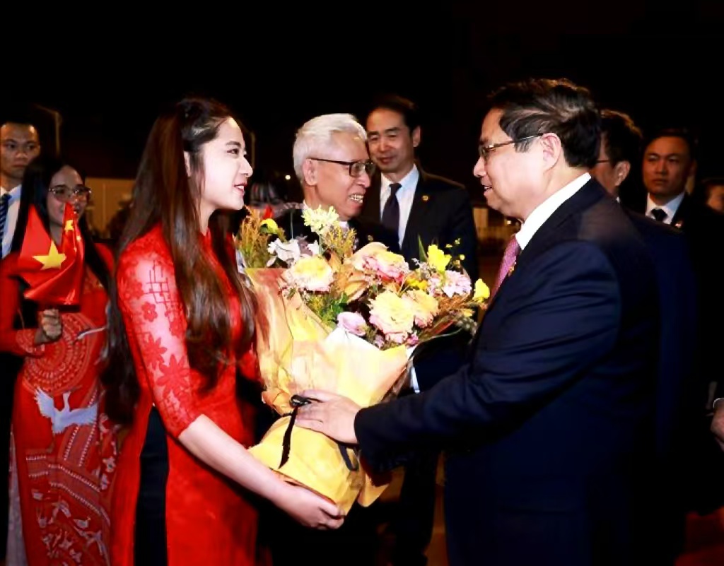 11月8日,越南总理范明政率越南代表团来渝访问,出席在重庆举办的中越企业经贸物流合作对话会、越南文化旅游推介会,前往重庆团结村中心站参加陆海新通道越中班列接车仪式,考察陆海新通道重庆无水港、红岩村等地。期间,越南总理范明政亲切会见越南来渝留学生和川渝越南同乡会侨胞。