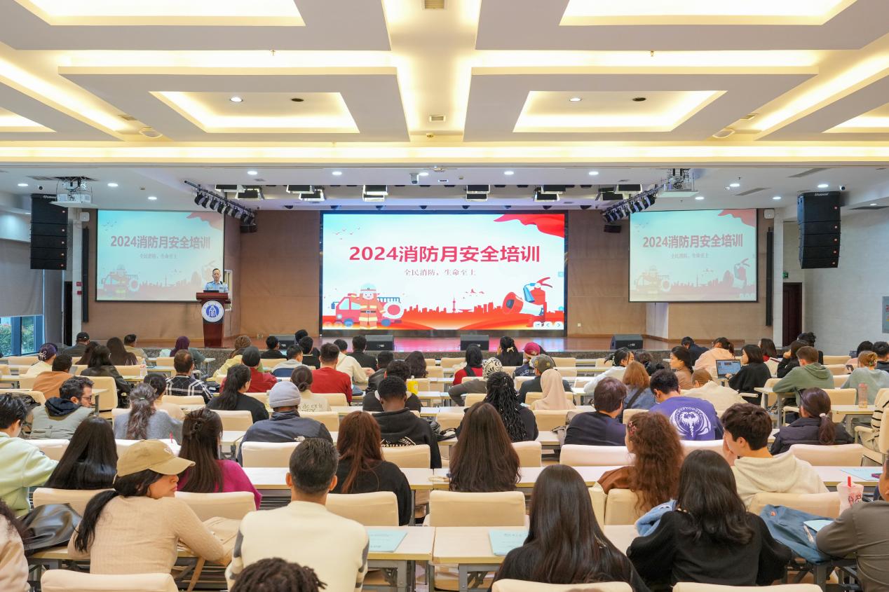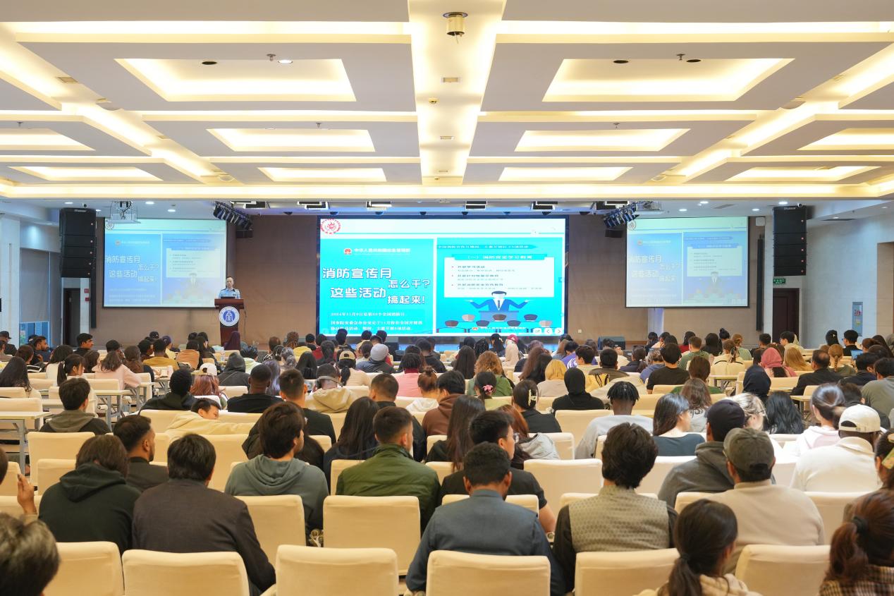 最后,北碚区利民消防中心龚鹏教官为同学们带来消防安全主题的知识科普。龚教官首先指出每年11月是我国的消防宣传月,明确消防安全的重要性;再结合高校常见的消防安全隐患,详细介绍了火灾的主要成因、防范措施以及消防设备的正确用法,为国际学生扫清消防知识盲区。同时传授了火灾发生时实用的逃生与自救技巧,从生活出发强化了国际学生的安全防范意识。