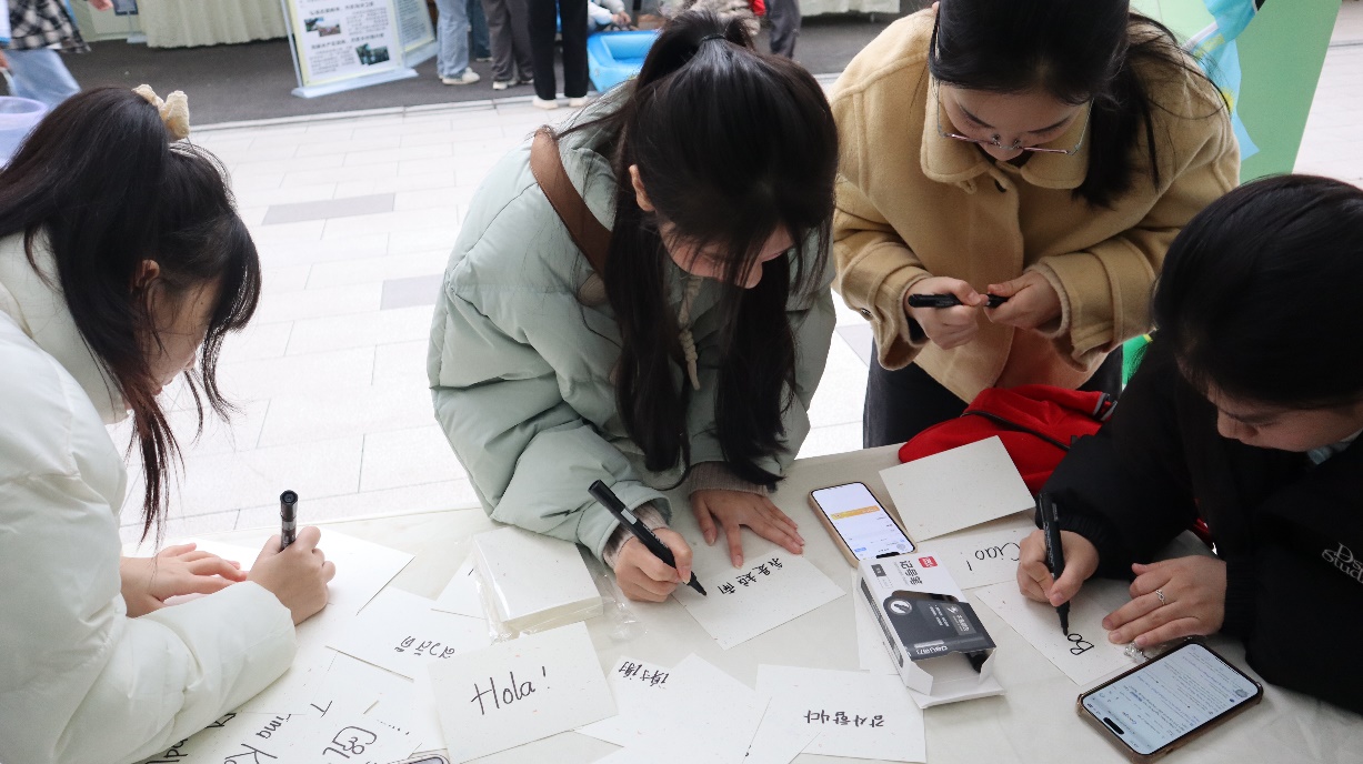 “ Muraho !”“ ขอบคุณ ! ”“ ယခုနေ့ကိုမင်းကျော်သားလား ? ”一张张小小的卡片承载着志愿队成员心中最热忱的祝福。在互动体验环节,来自中国的参与者们根据卡片上的文字猜测它们来自哪个国家。尽管文字大多是陌生的,但外国志愿者们的友善提示让人分外熟悉。过程中,志愿者们用中文为大家解释卡片上词语或句子的意思,简单介绍它们所属的国家。所有人在此刻都投以专注的目光,而志愿者们耐心热情的协助与解说就是对此最好的回应。