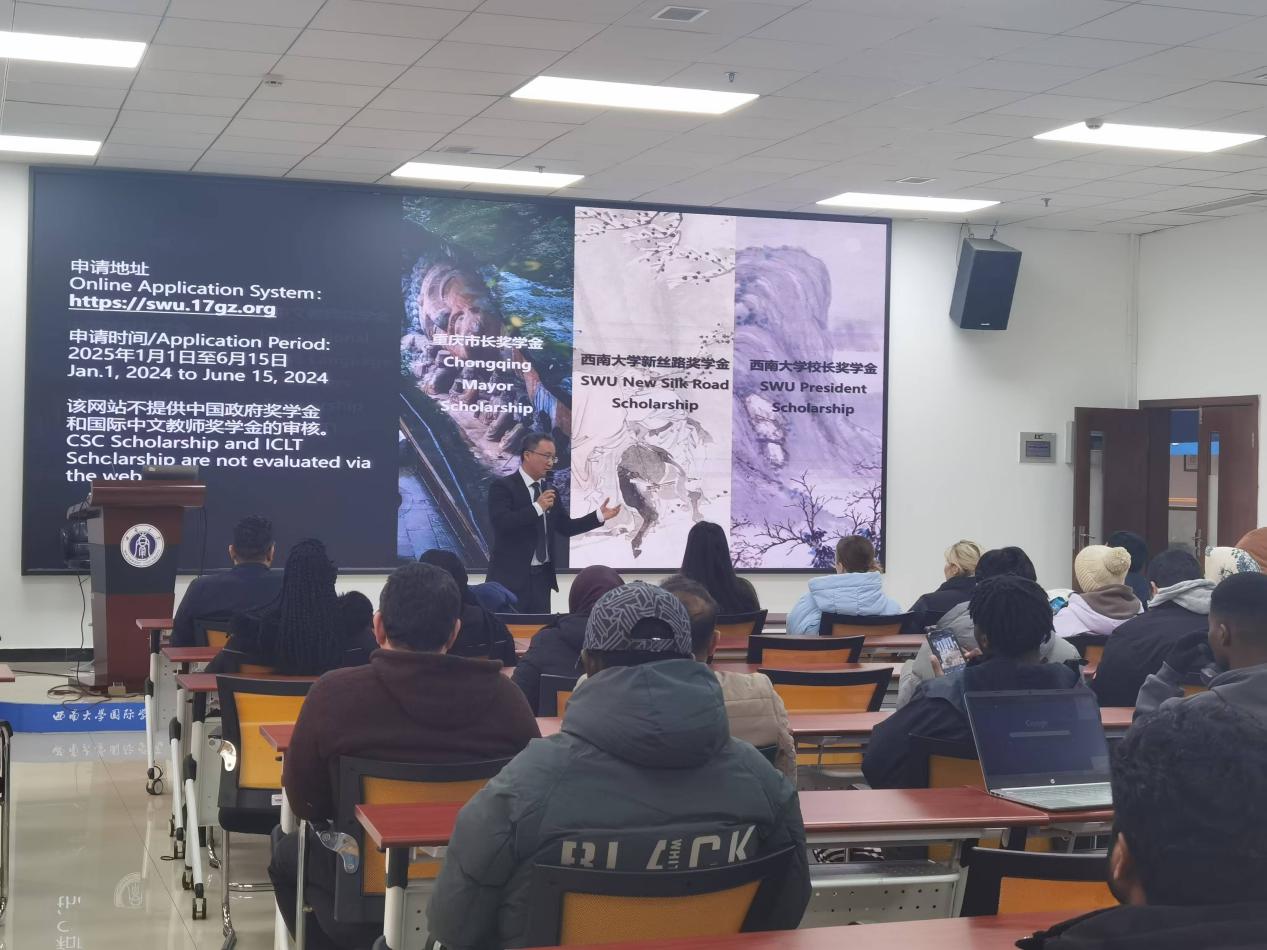 刘嬛就重庆风貌、学校基本情况、优势学科专业、奖学金设置以及本校生申请流程、注意事项等多方面进行中英文介绍。