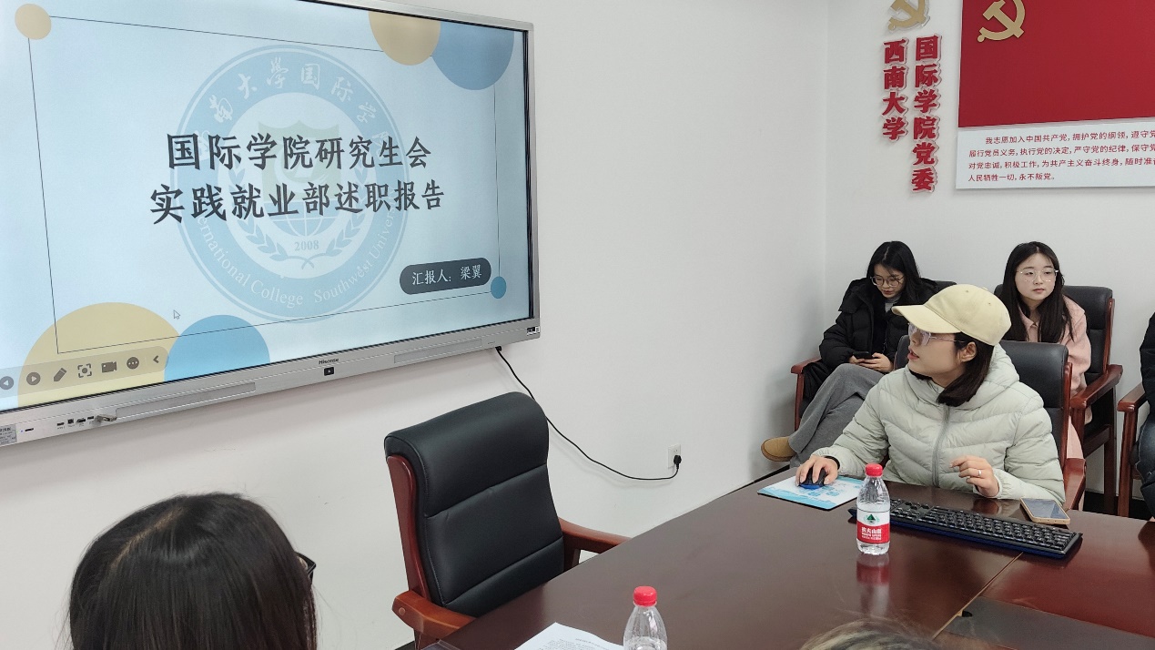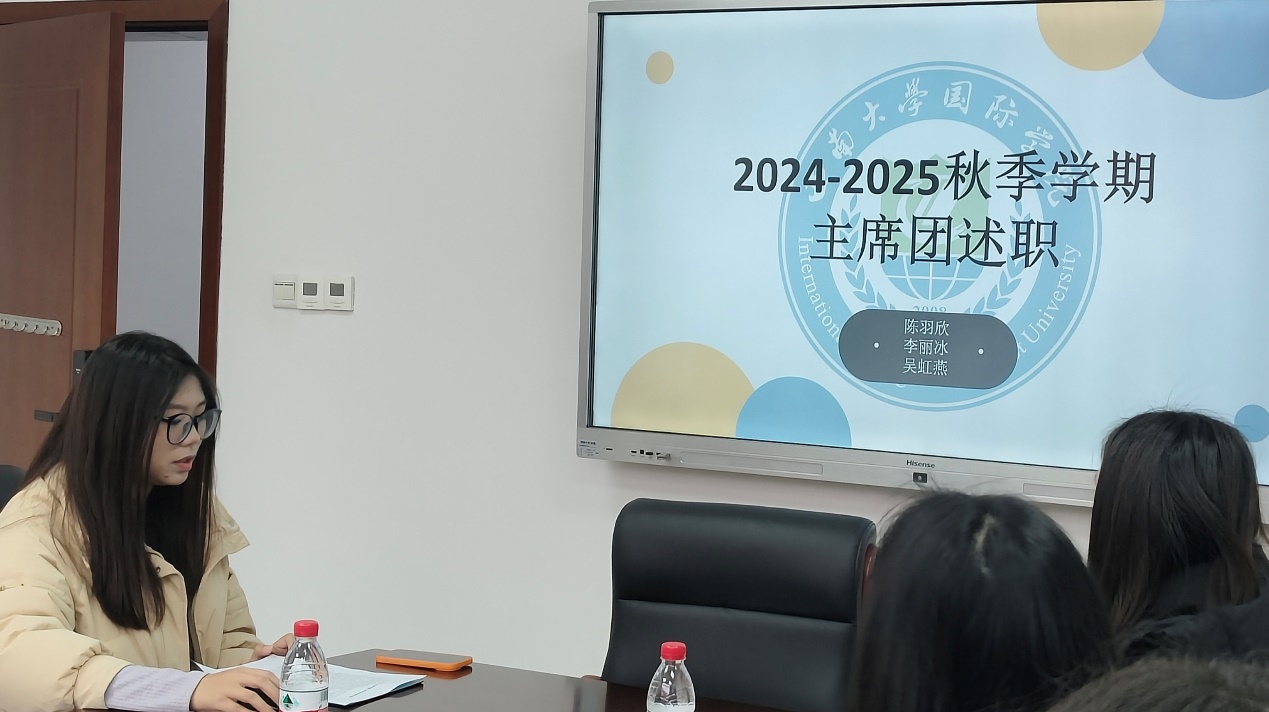 新闻中心负责人胡晶晶在述职中明确了新闻中心的职责定位,作为“奔赴在前线”的文字记录者和传播者,主要负责学院各项活动的新闻采编和撰写工作。她重点总结了本学期的工作成果,并对未来工作进行了展望。她寄语部员保持热爱与初心,精进稿件质量,积极配合研究生会整体工作,为学院新闻宣传注入更多活力。