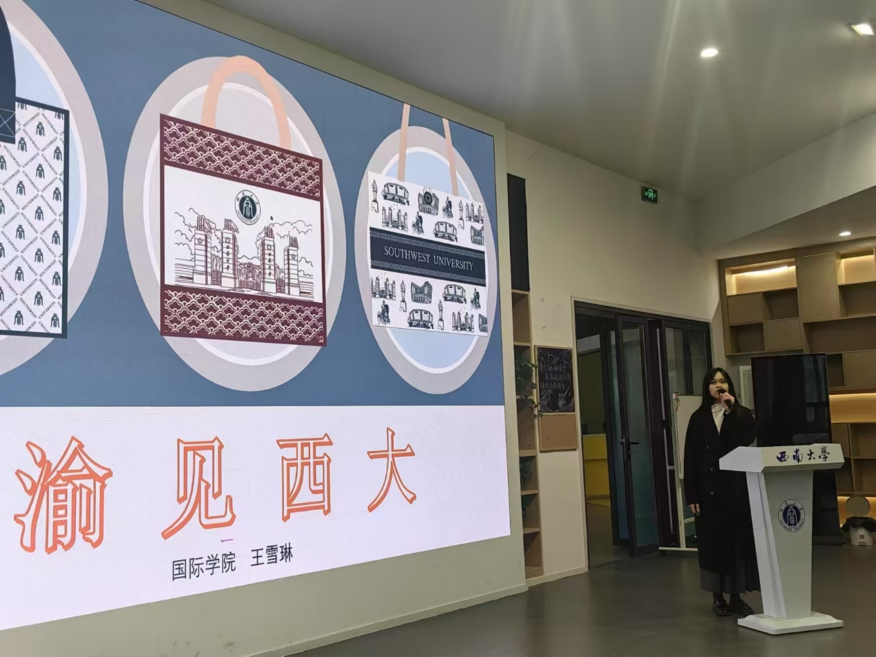 此次大赛开设了历史文化类、地理环境类、毕业纪念类、校友共创类四类赛道,旨在展现学校青年学子艺术才华,激发学生文化创新创造活力和爱校荣校热情。胡晶晶同学以“千里广大,无问西南”为主题,设计了彰显中外校友同频共振的系列产品获得比赛组委会充分认可。泰国学生王雪琳爱好绘画和设计,积极参加校园文化建设相关活动,她为365上市公司(英国)集团设计了紫云楼电梯轿厢,为文化长廊制作了精美的剪纸作品。此次比赛,她以学校具有代表性的特色建筑为灵感,精心设计了“渝见西大”主题背包,将对学校的深厚情感融入到作品创作中,体现了来华留学生对于学校校园文化的理解和创新,彰显了学校对来华留学生国情、校情教育的育人成效。