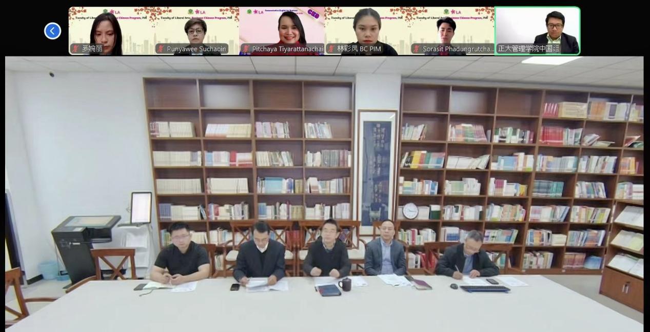 2025年3月25日上午,学院与正大管理学院(以下简称正大)文学院成功举办了深化合作线上会议。会议不仅是对过去合作成就的一次总结,也是对未来合作蓝图的一次规划。学院张袁松书记,于泽元院长,耿军副书记、副院长,招生办黄无为主任,项目对接人王鹊,正大校长办公室钟福安执行总监,文学院Pitchaya Tiyarattanachai代理院长,院长助理温惠娟、黄伟荣等出席会议。会议由正大文学院商务汉语系苏兆伟老师主持。