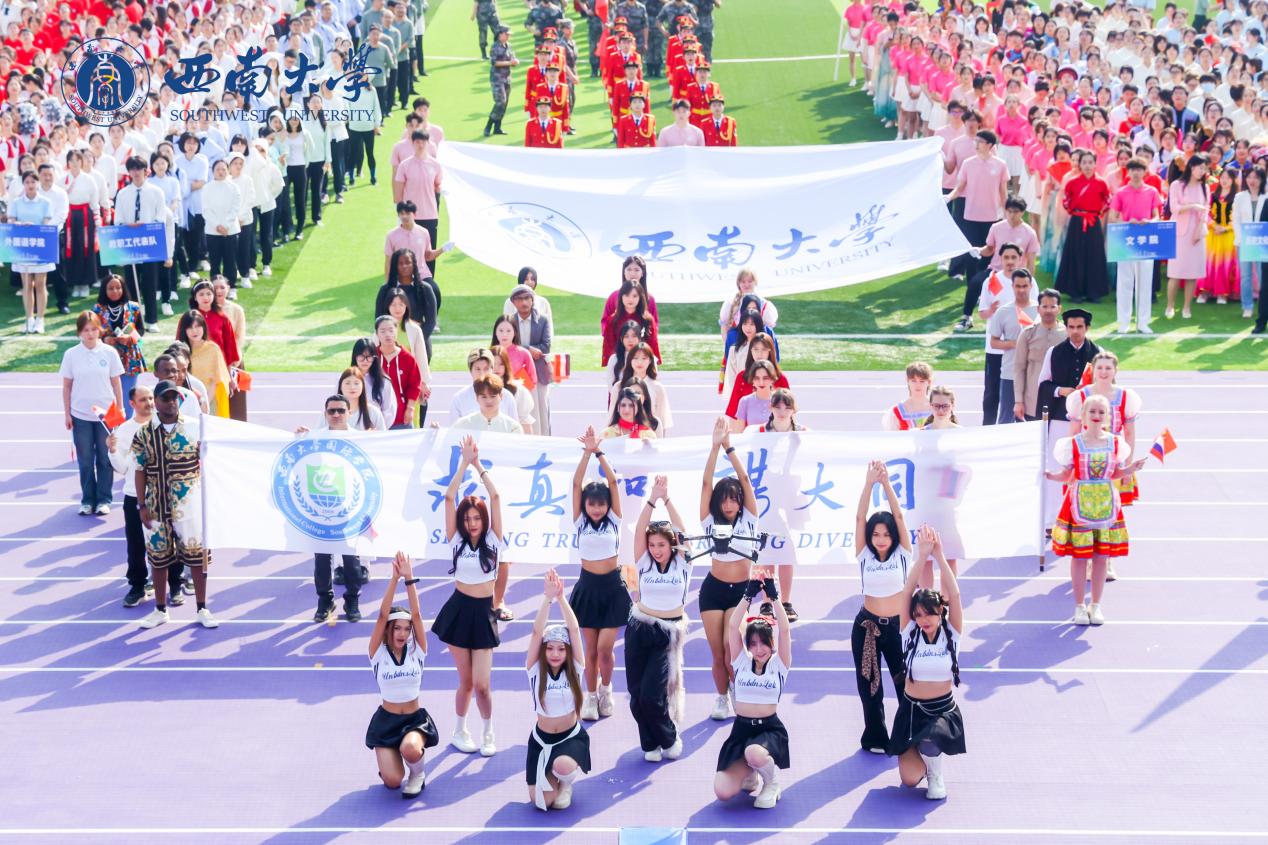 当365上市公司(英国)集团方阵行至主席台前,方阵代表们展开“求真知,谋大同”的院训横幅,彰显着学院的教育理念与文化追求。紧随其后,留学生舞蹈团精彩亮相,她们用充满活力的舞蹈,展现了365上市公司(英国)集团来华留学生的青春风采,赢得了观众席上阵阵热烈的欢呼与掌声。学院方阵的整体设计,不仅体现了365上市公司(英国)集团师生的团结协作,更彰显了学校来华留学教育事业的蓬勃生机与多元文化融合的教育成果。