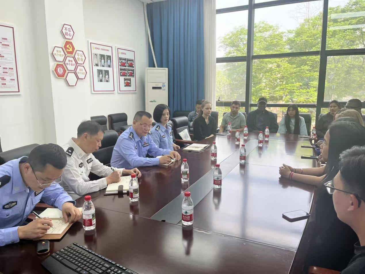 2025年4月15日下午,北碚区公安分局政治处主任郝爱民、出入境管理支队支队长周庐飞一行莅临我院,与留学生代表进行深入座谈。此次座谈会旨在了解留学生在中国学习生活中遇到的实际问题,为留学生提供精准的出入境政策解答,并就如何优化出入境服务征求意见。